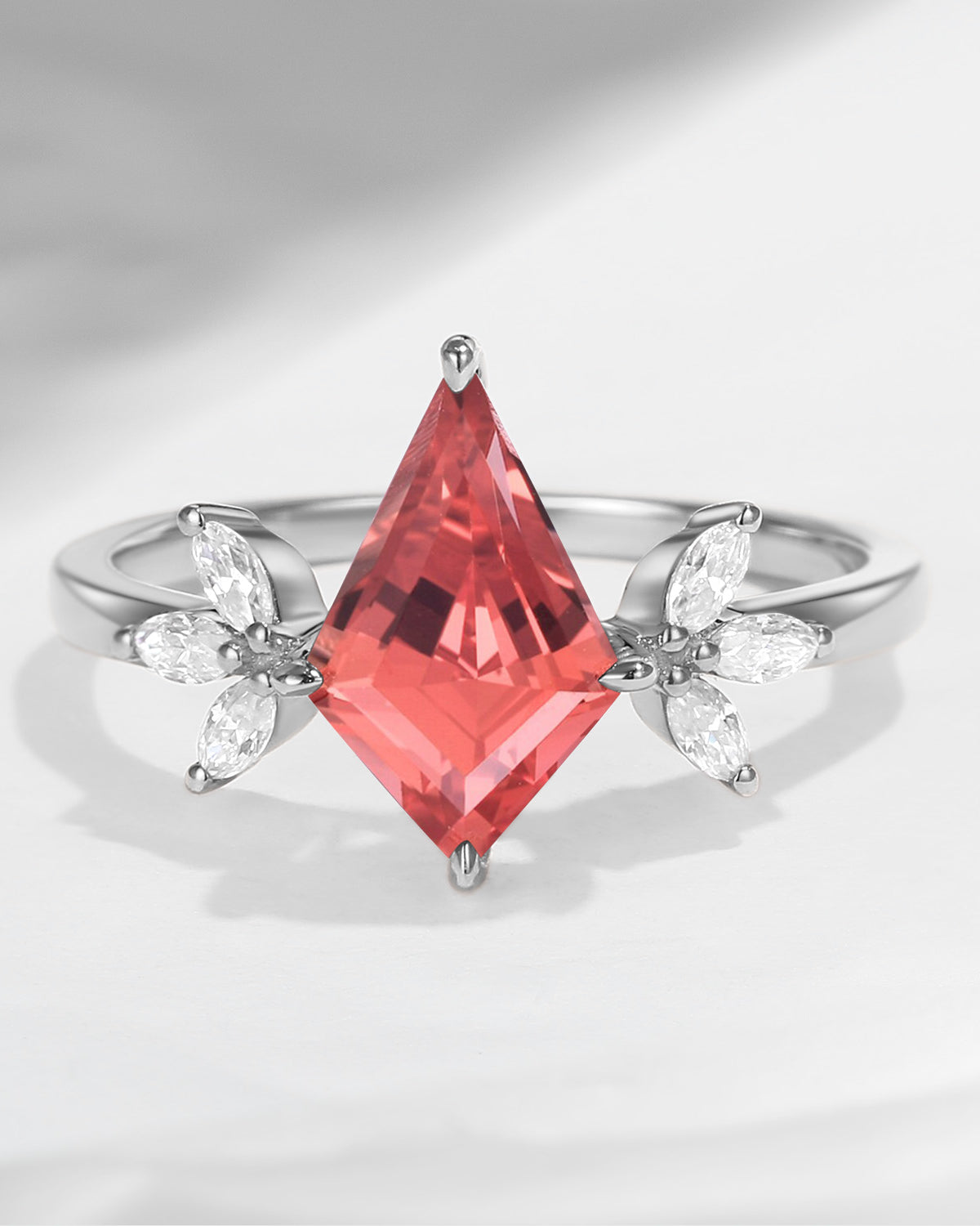 Kite Shaped Lab Padparadscha Butterfly Cluster Engagement Ring