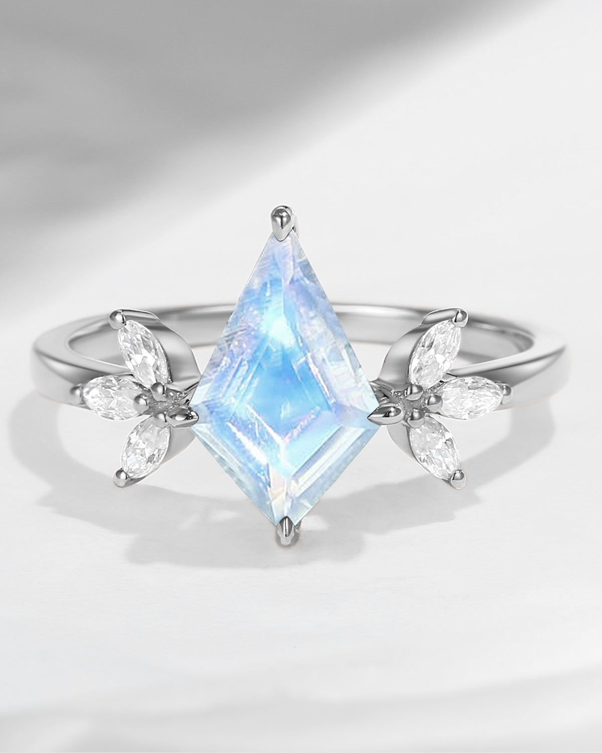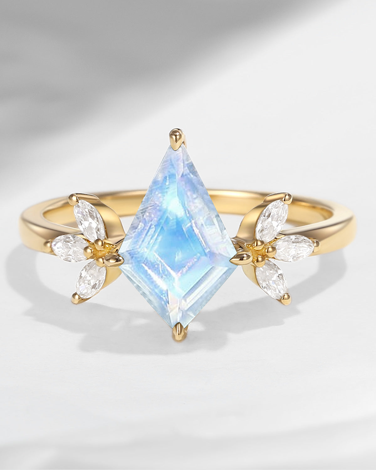 Kite Shaped Moonstone Butterfly Cluster Engagement Ring