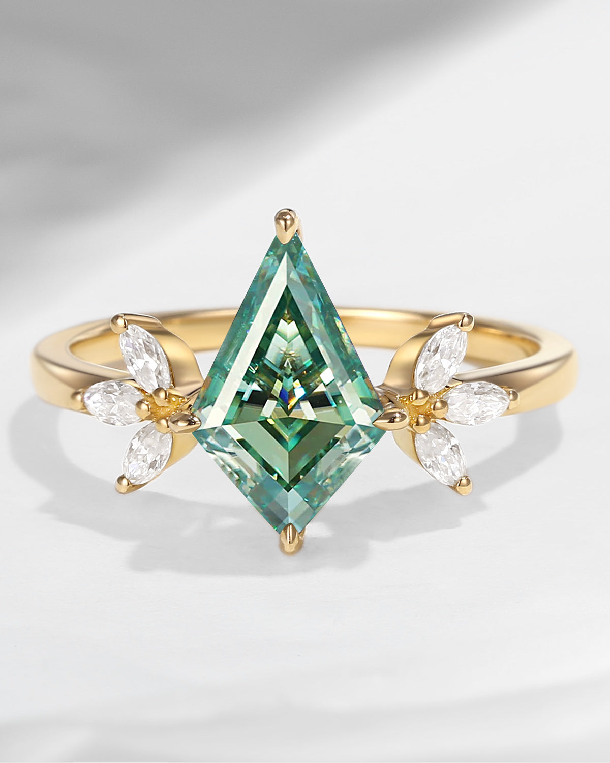 Unique Kite Shaped Green Moissanite Butterfly Engagement Ring