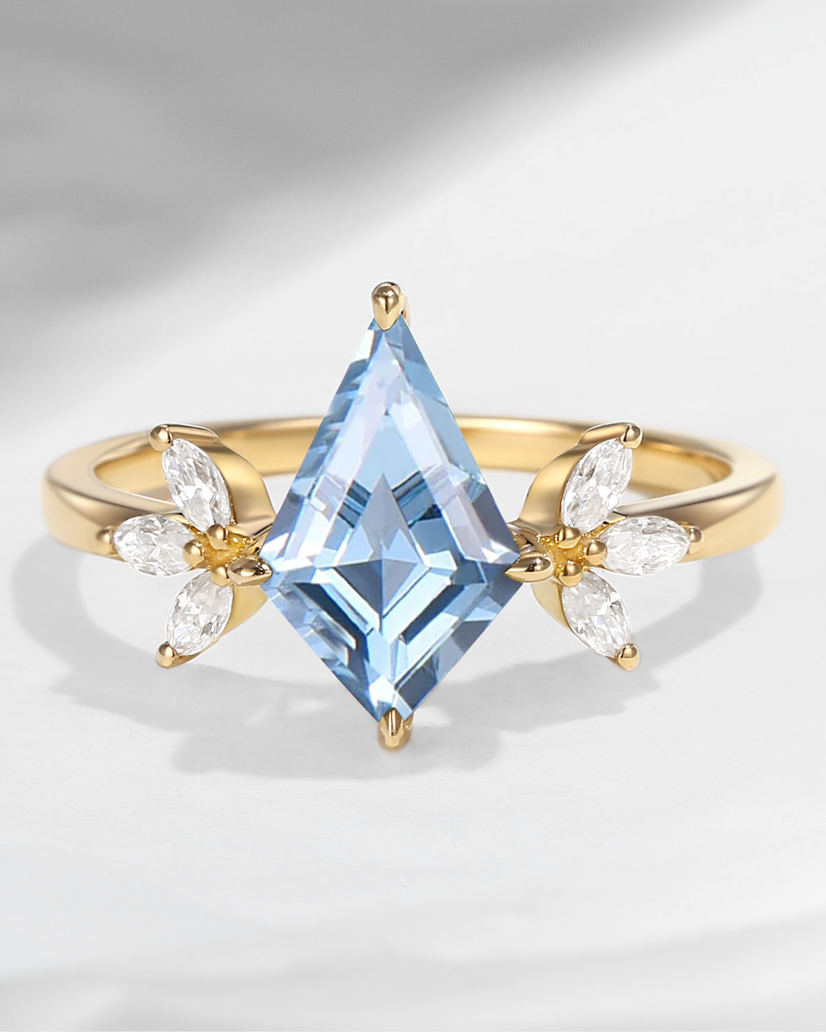 Kite Shaped Blue Sandstone Butterfly Cluster Engagement Ring