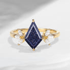 Kite Shaped Blue Sandstone Engagement Ring Kite Engagement Ring Unique Art Deco Flower Gift