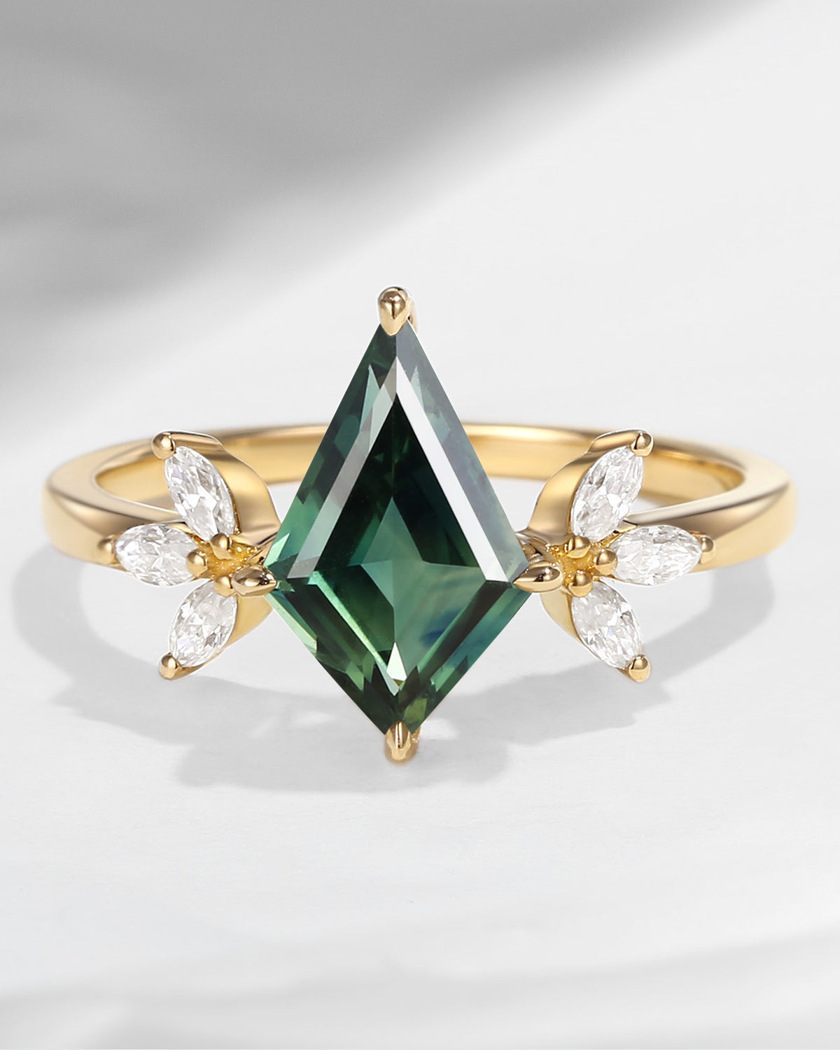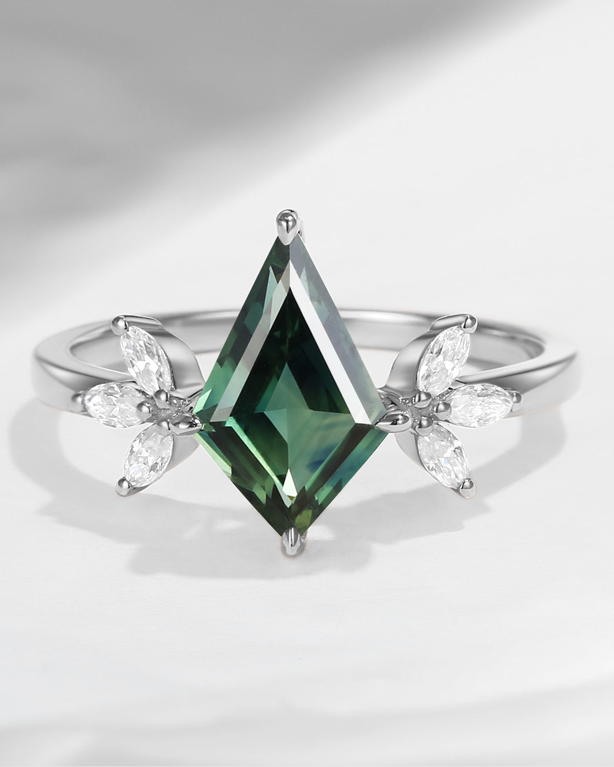 Unique Kite Shaped Natural Teal Sapphire Butterfly Engagement Ring