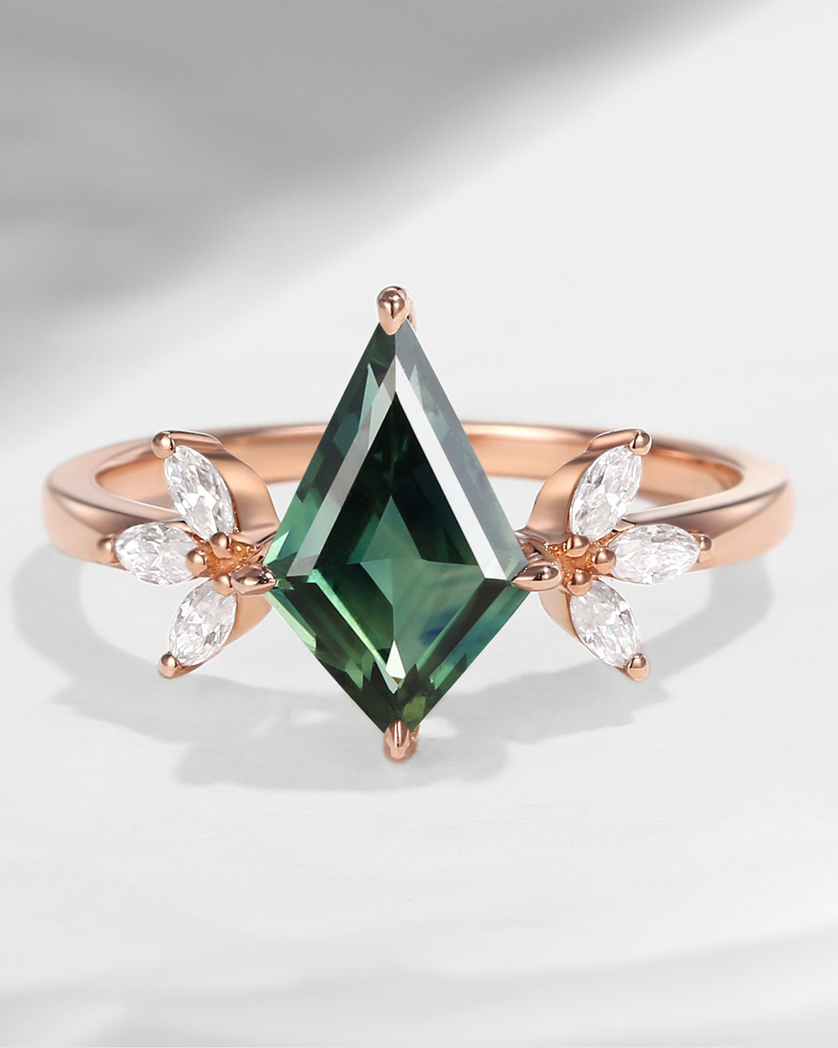 Unique Kite Shaped Teal Moissanite Butterfly Engagement Ring