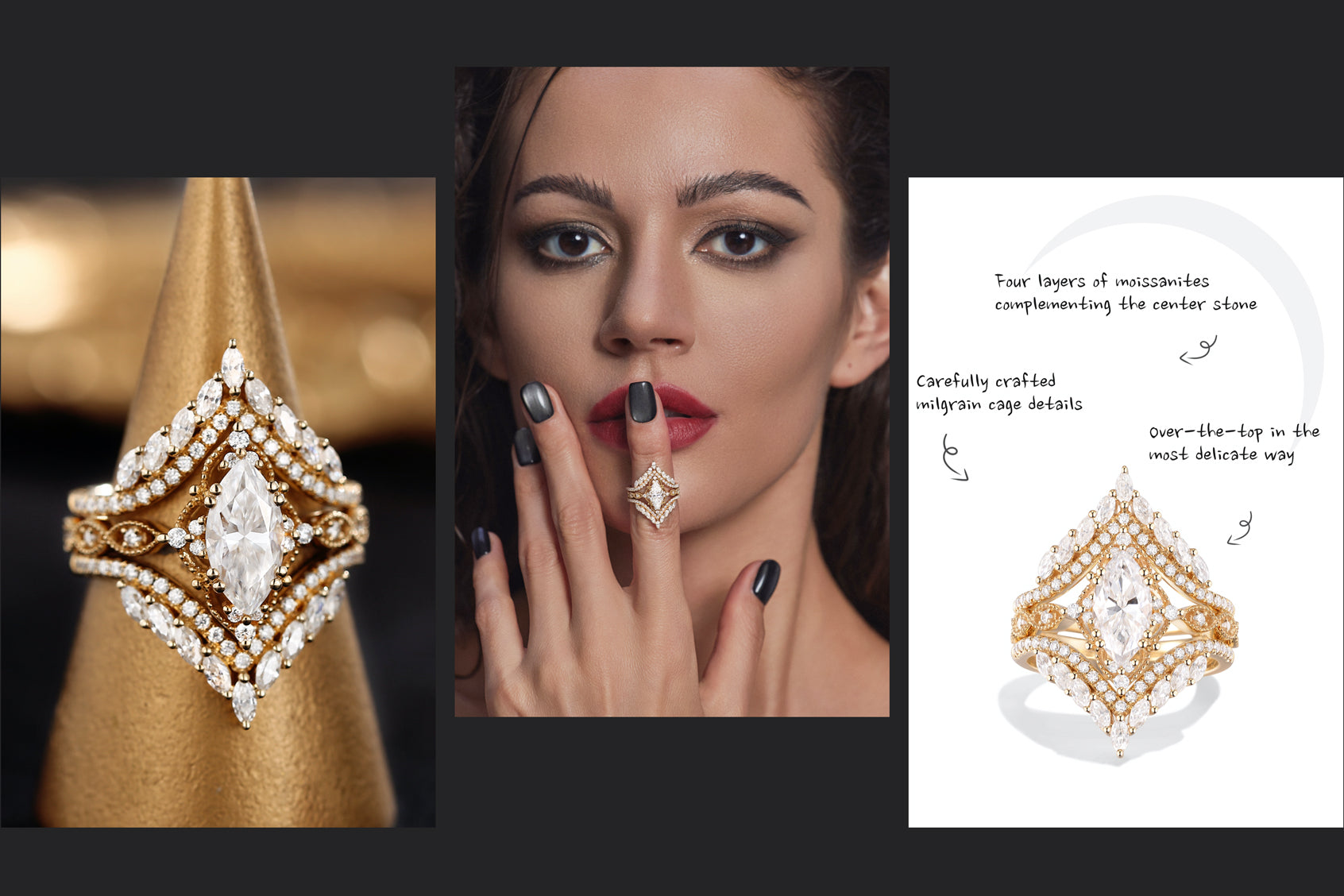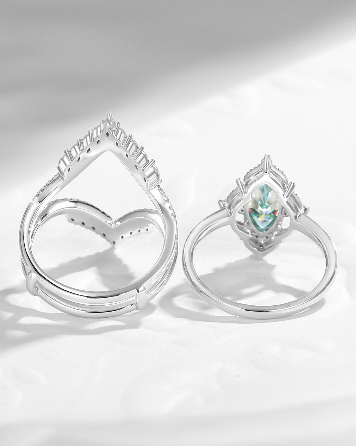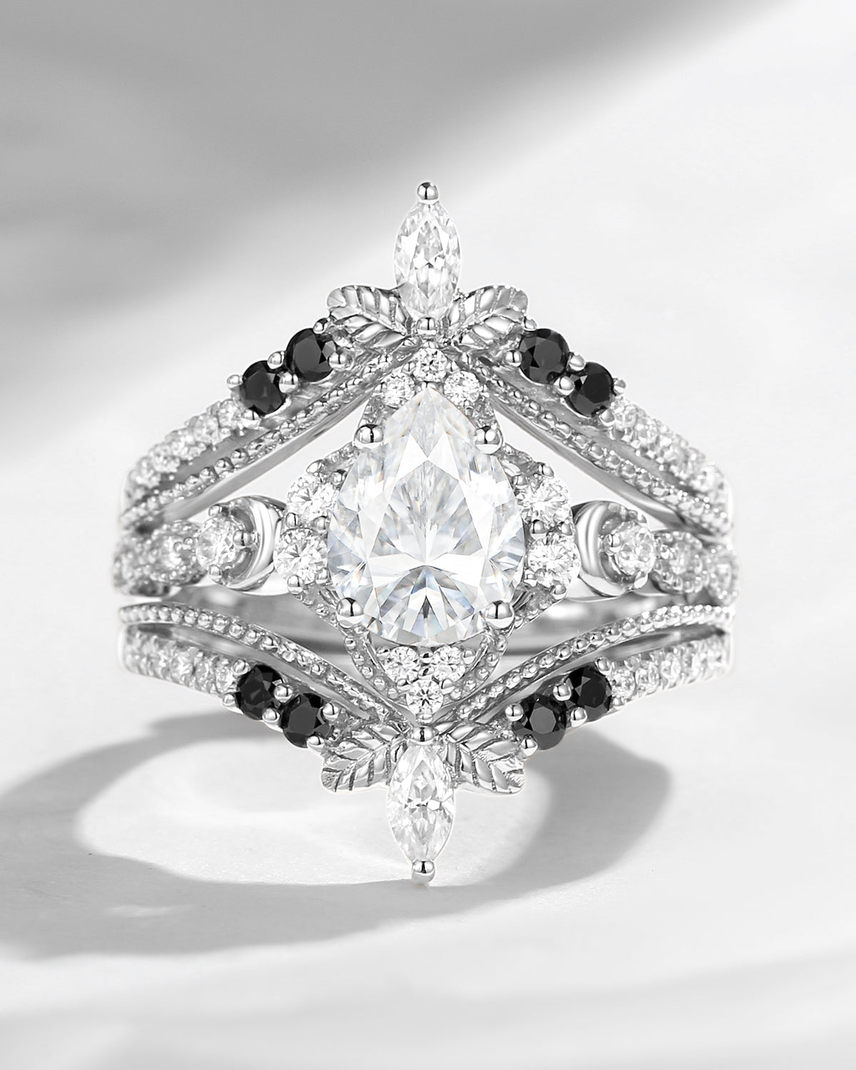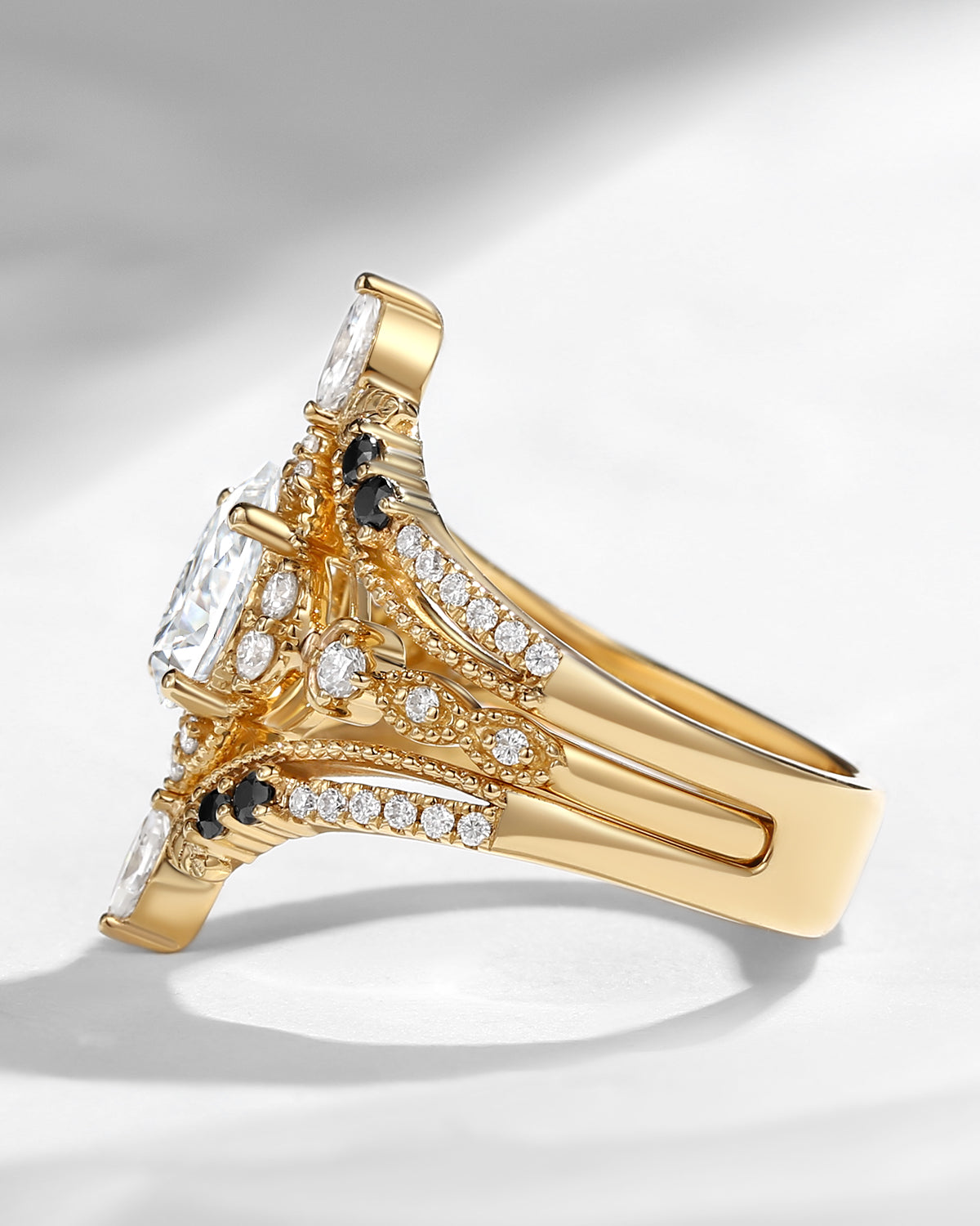 Pear Cut Vintage Inspired Moissanite Ring Set 2pcs - Maximalist Style Cage Ring