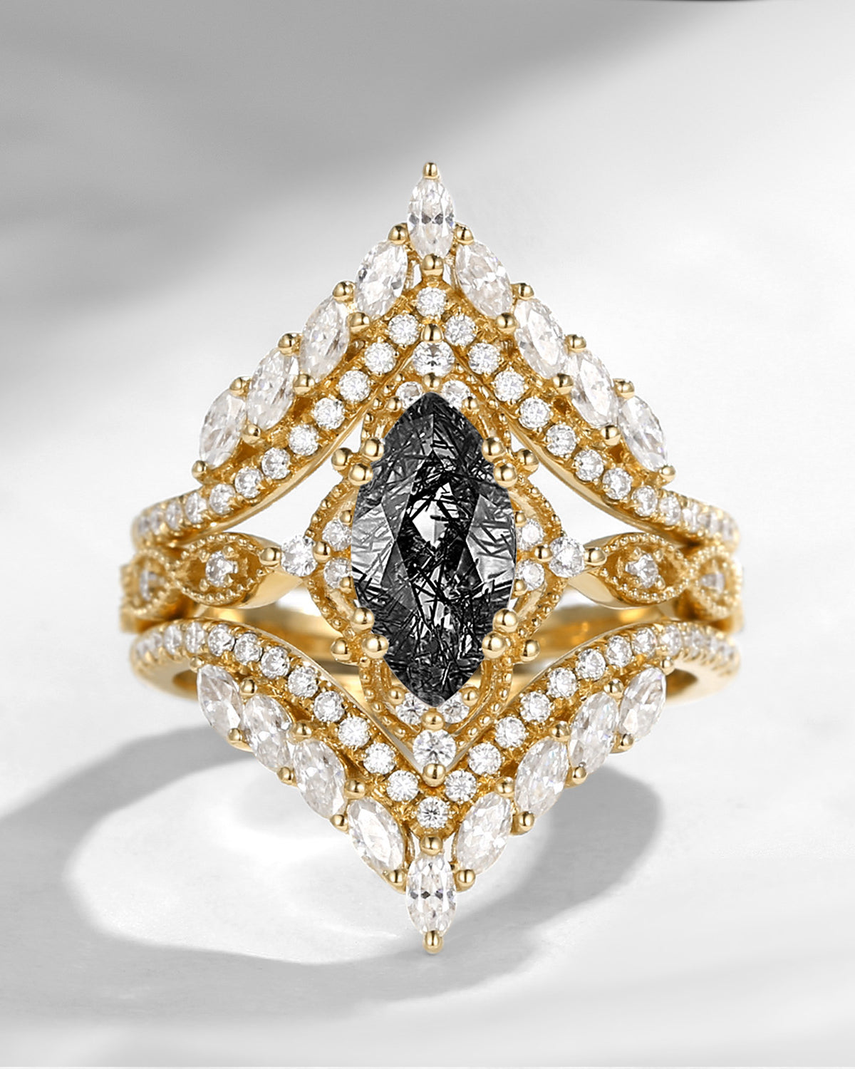 Crescent Moon | Vintage Coffin Black Rutilated Quartz Engagement Ring Jacket 2pcs - Guardian Angel