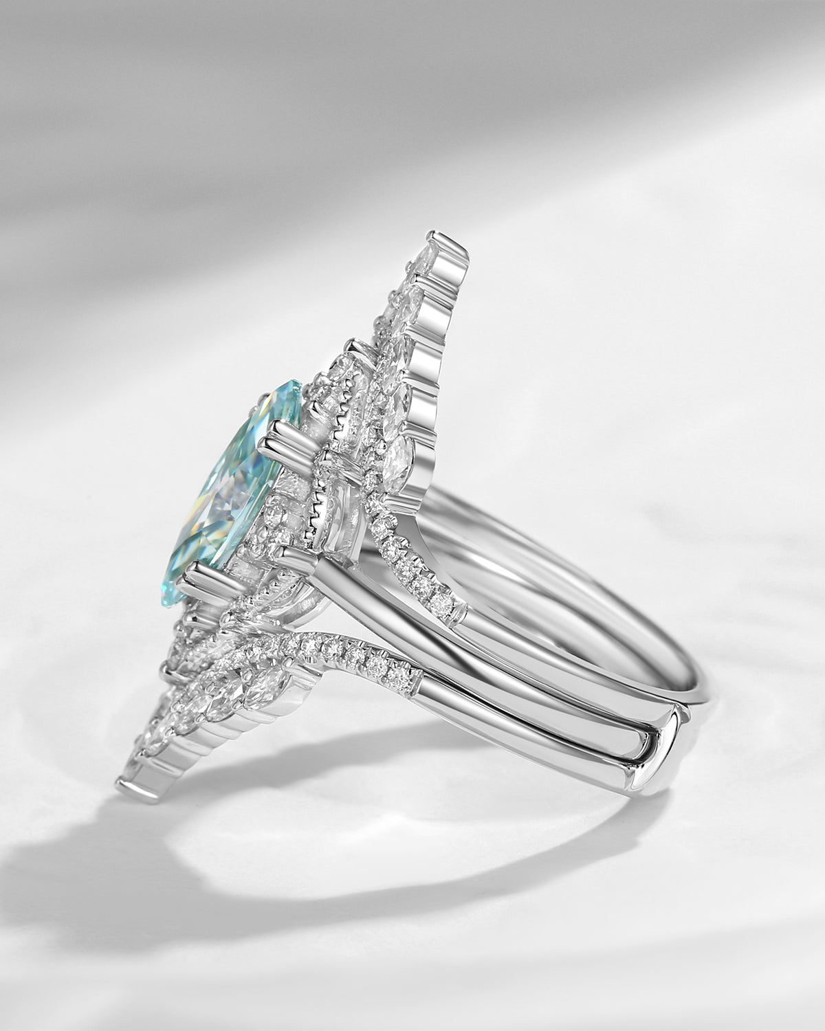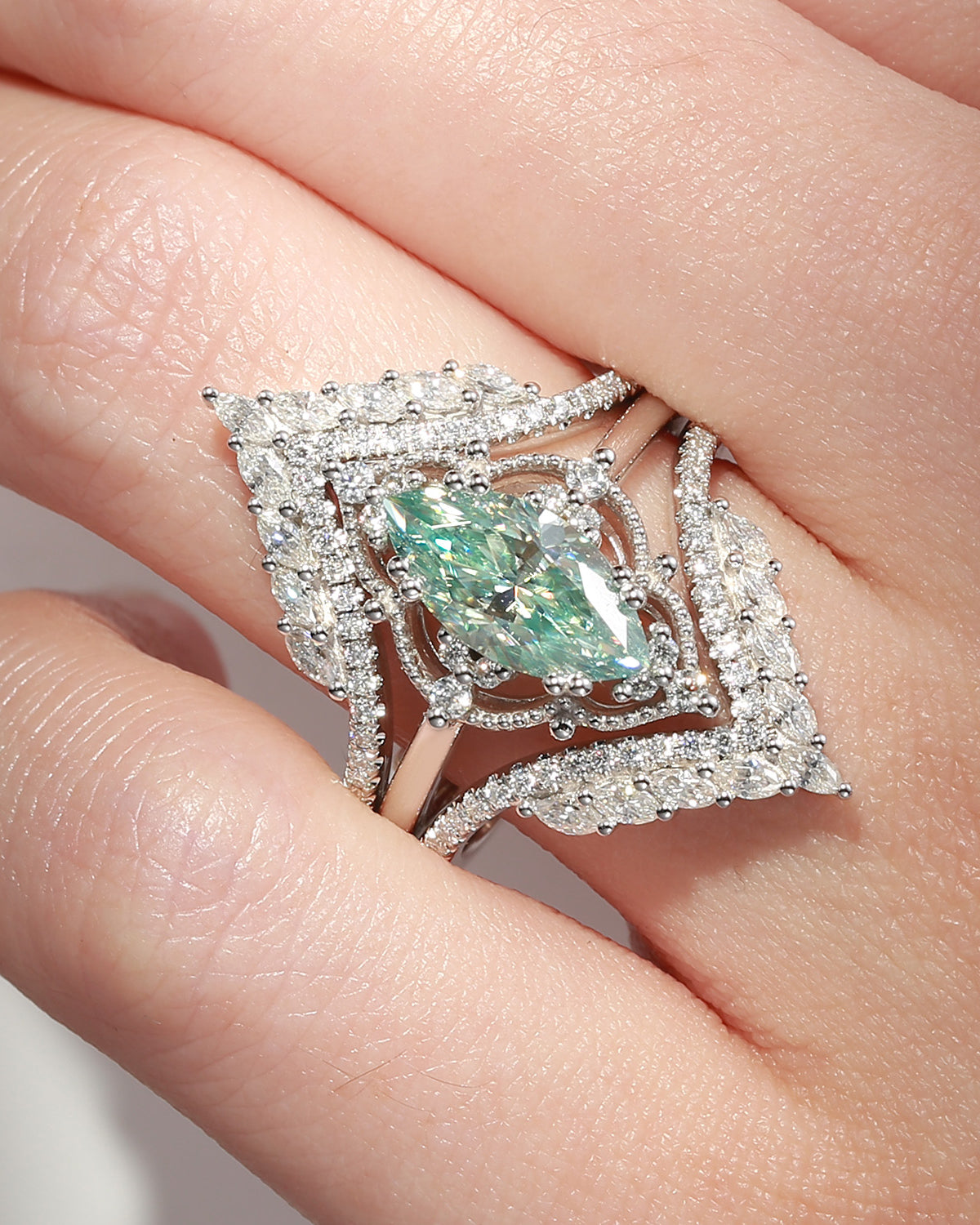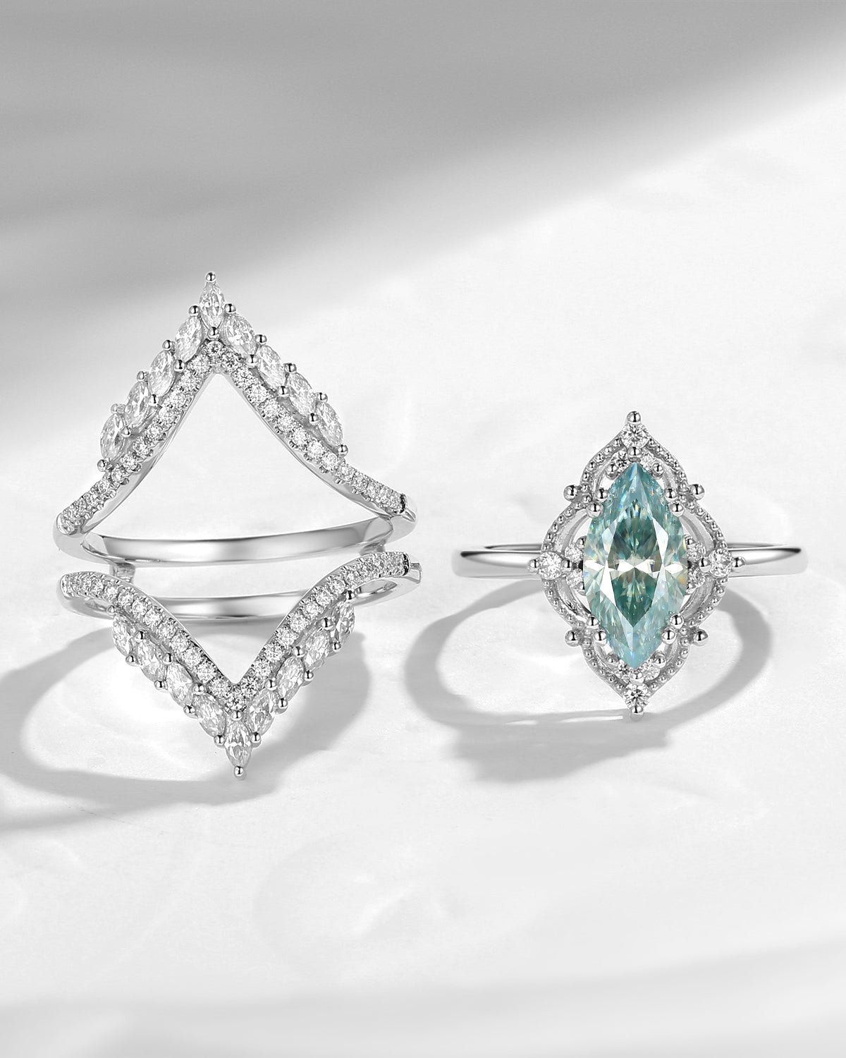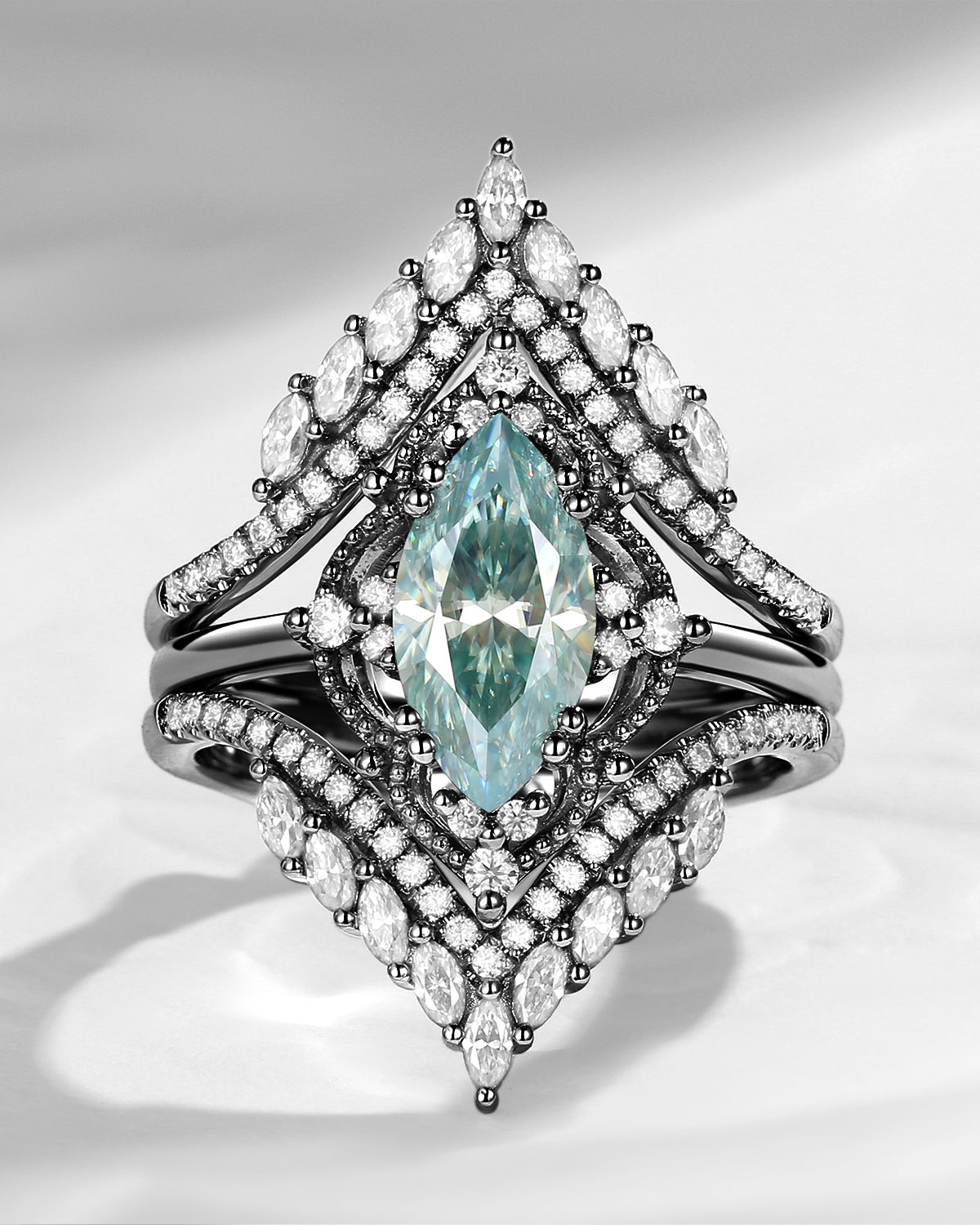 Vintage Style Marquise Mint Moissanite Cage Ring Bridal Set 2pcs