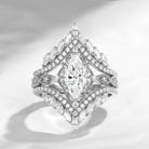 Marquise Moissanite Bridal Set 2pcs Moissanite Cage Ring Unique Marquise Engagement Ring White Gold Wrap Ring