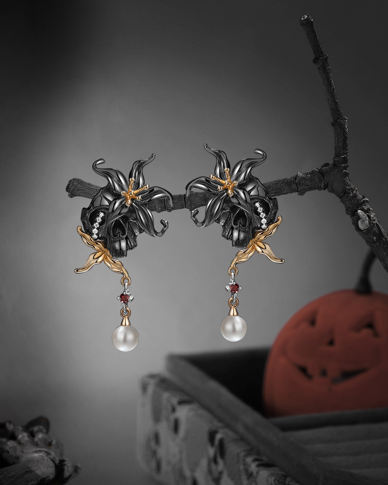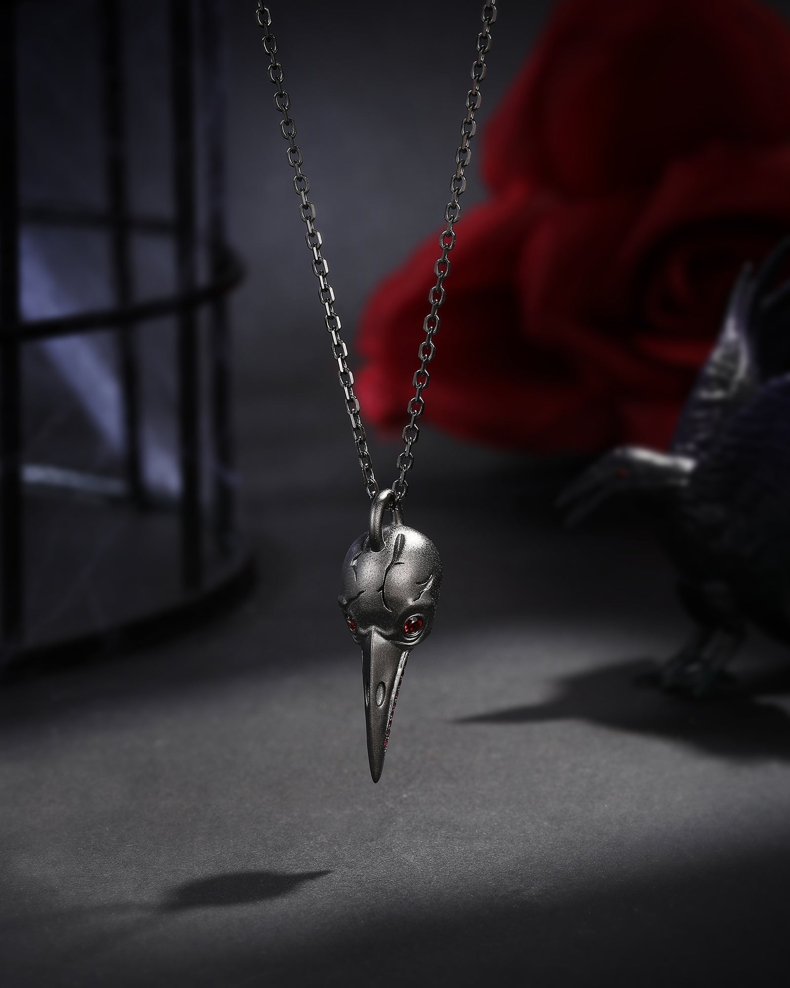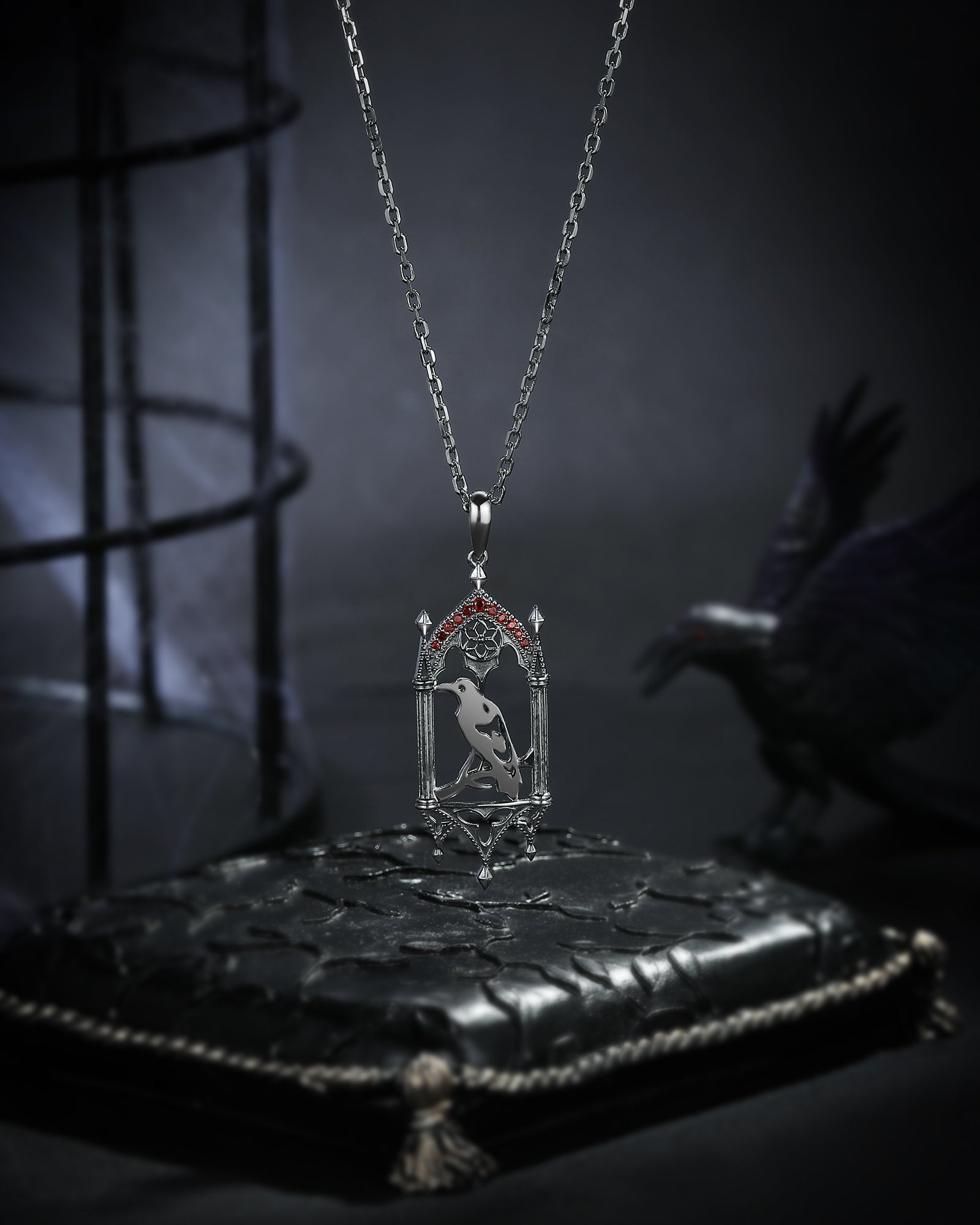 Gothic Crow Inspired Garnet Halloween Black Gold Engagement Ring