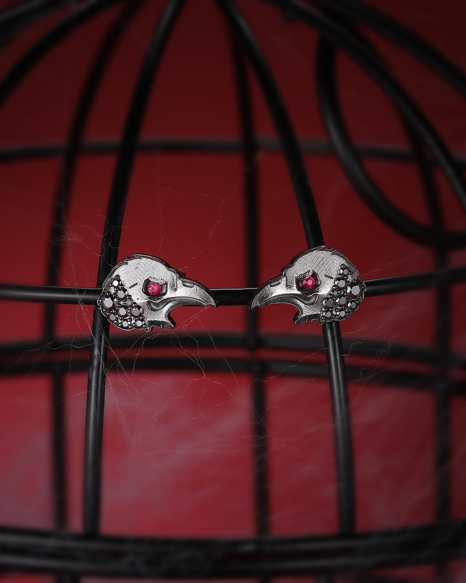 Lab Ruby Gothic Crow Inspired Black Gold Hollow Wedding Band