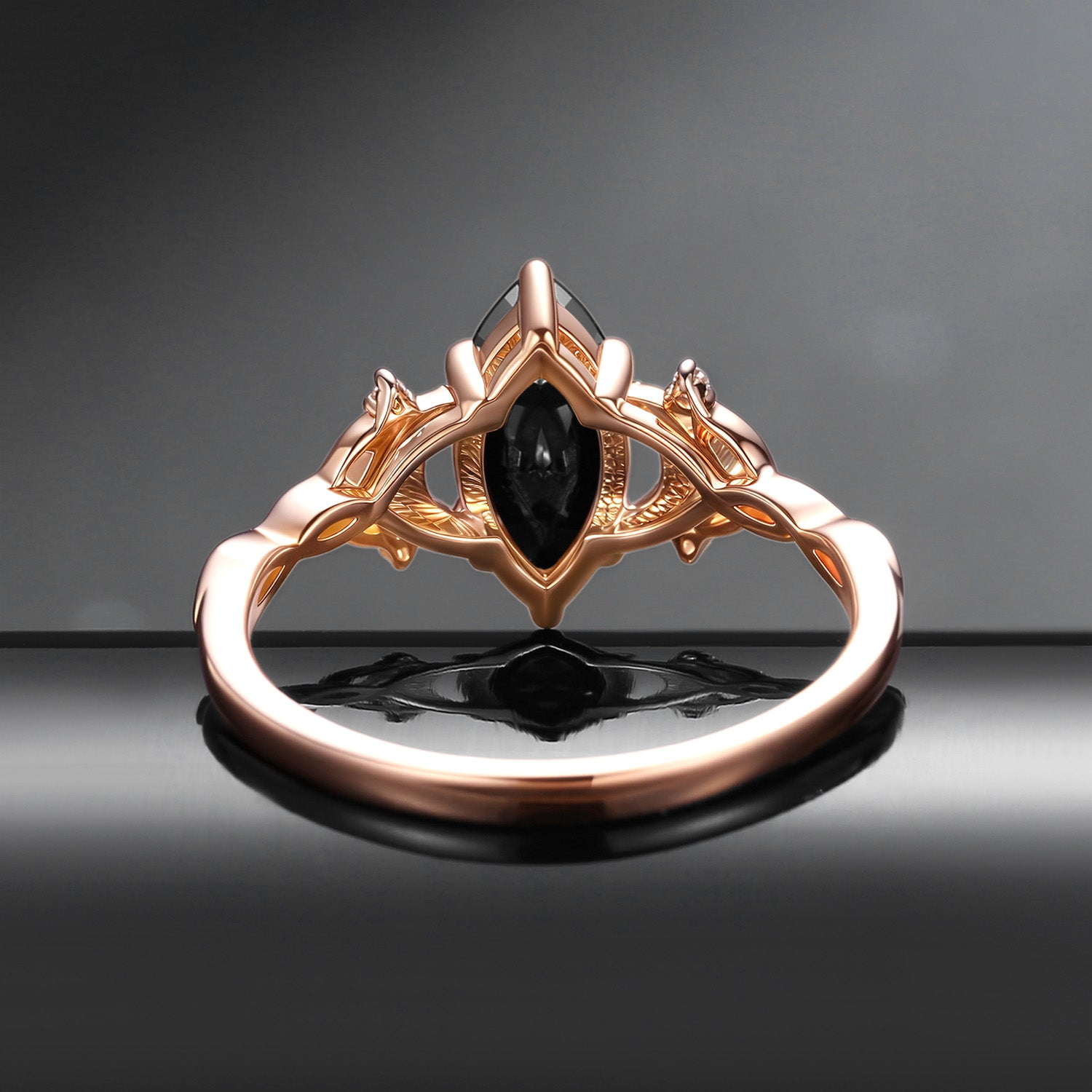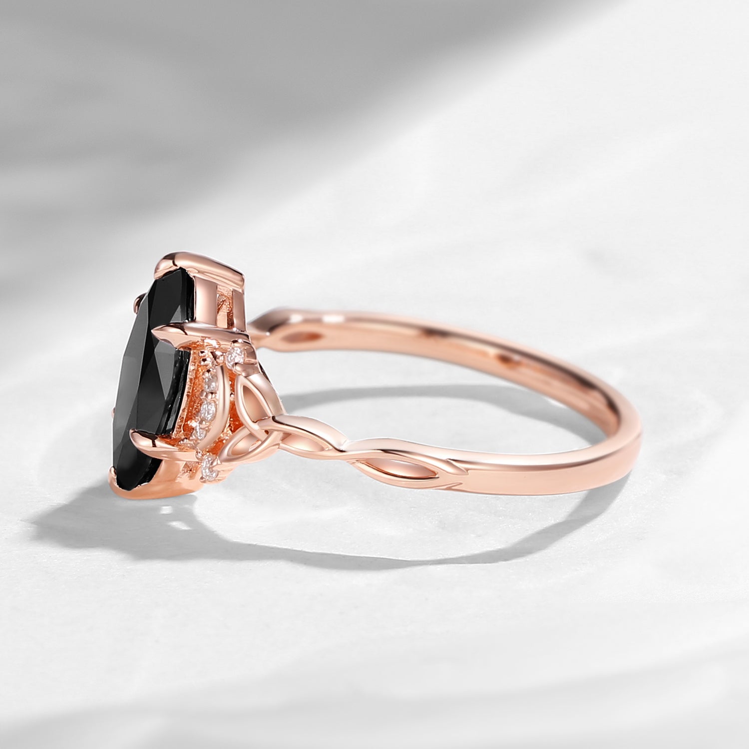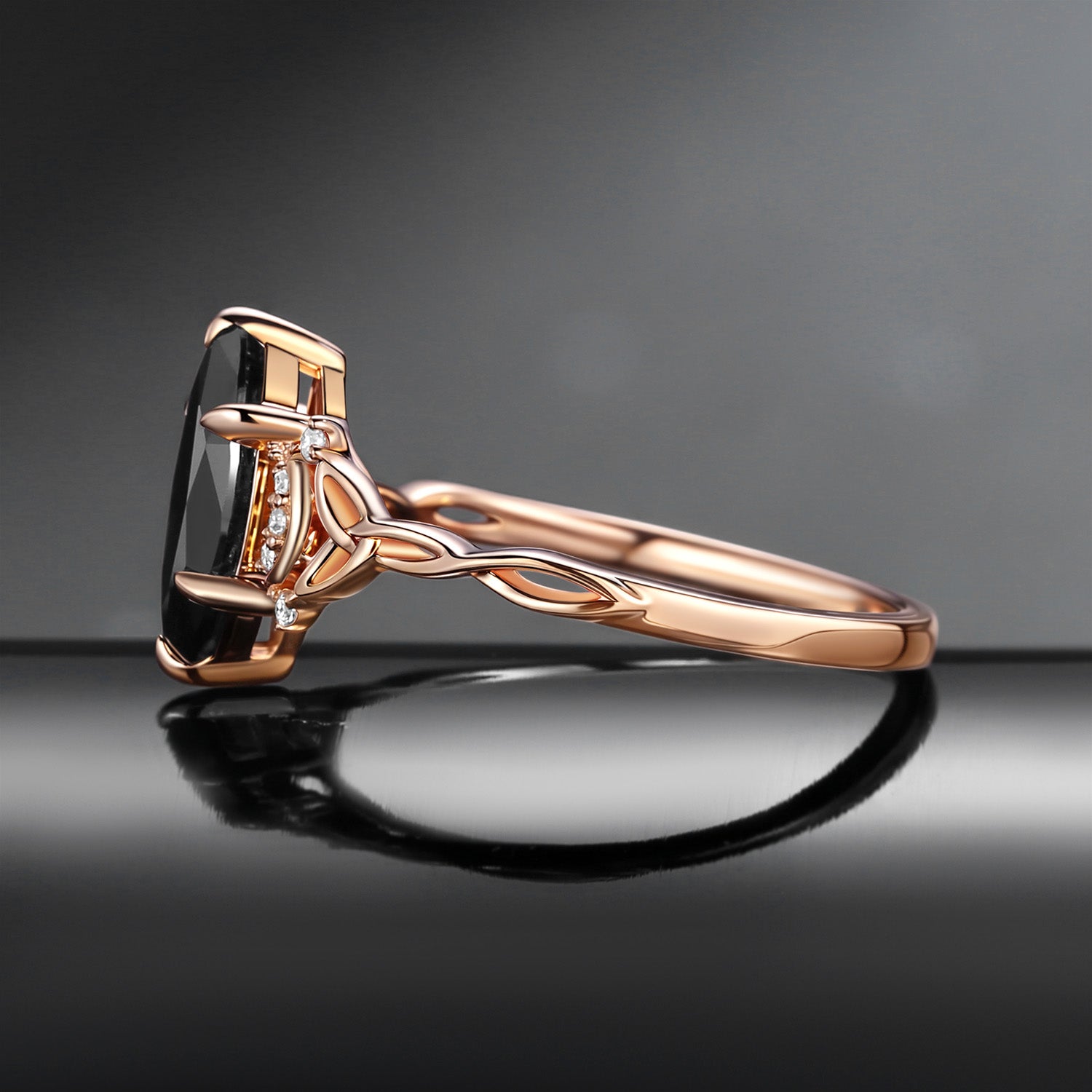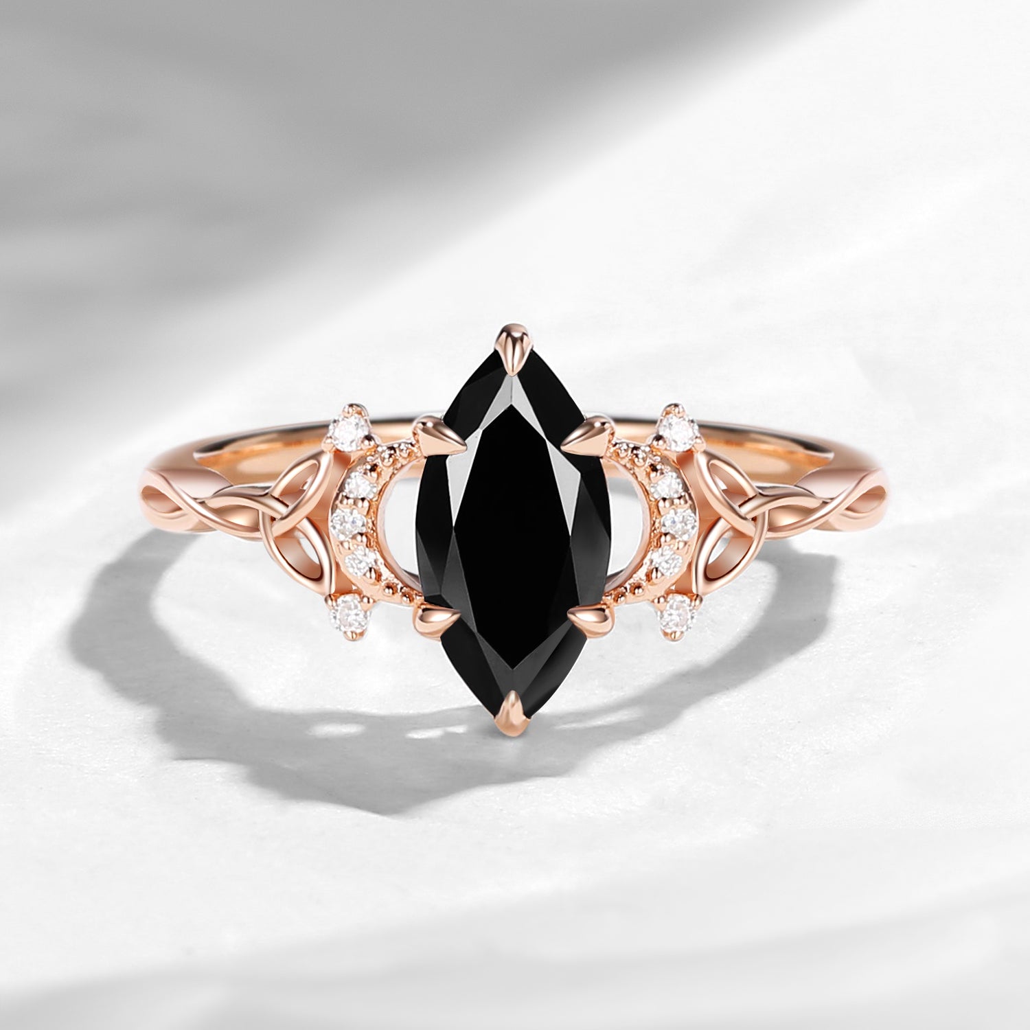 Celtic Moon | Coffin Black Rutilated Quartz Celtic Engagement Ring