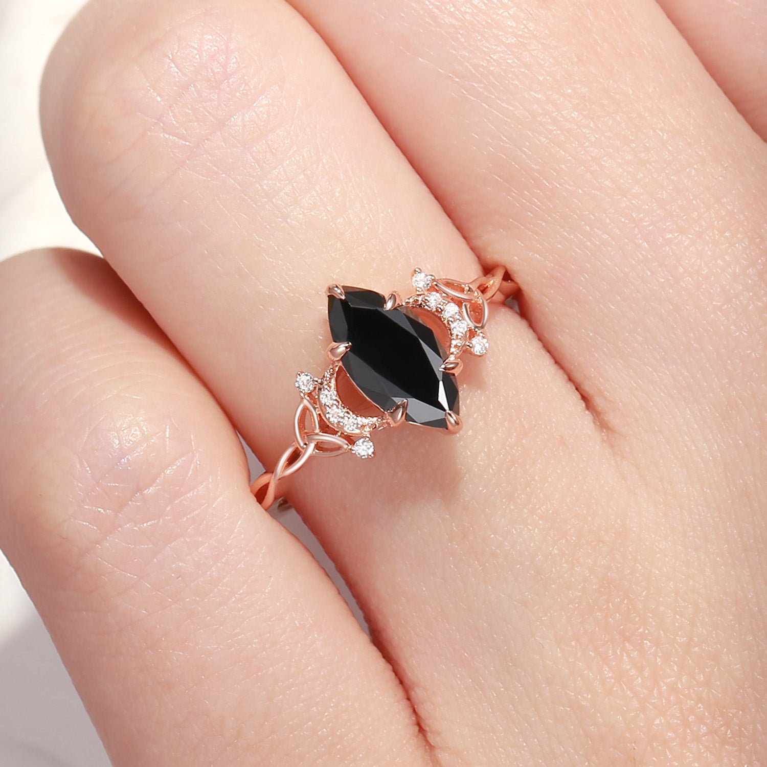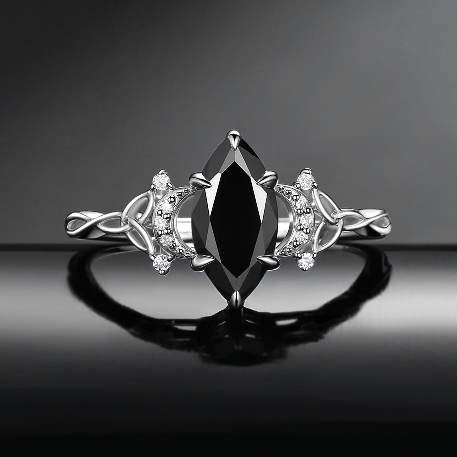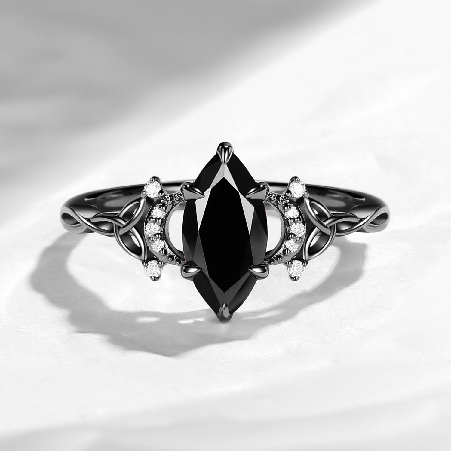 Crescent Moon | Unique Coffin Black Moissanite Celtic Infinity Engagement Ring Set 3pcs