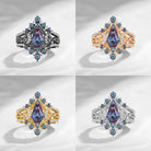 Crescent Moon | Celtic Unique Coffin Lab Alexandrite Infinity Engagement Ring Set 3pcs