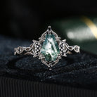 Crescent Moon | Unique Coffin Moss Agate & Black Moissanite Infinity Celtic Engagement Ring