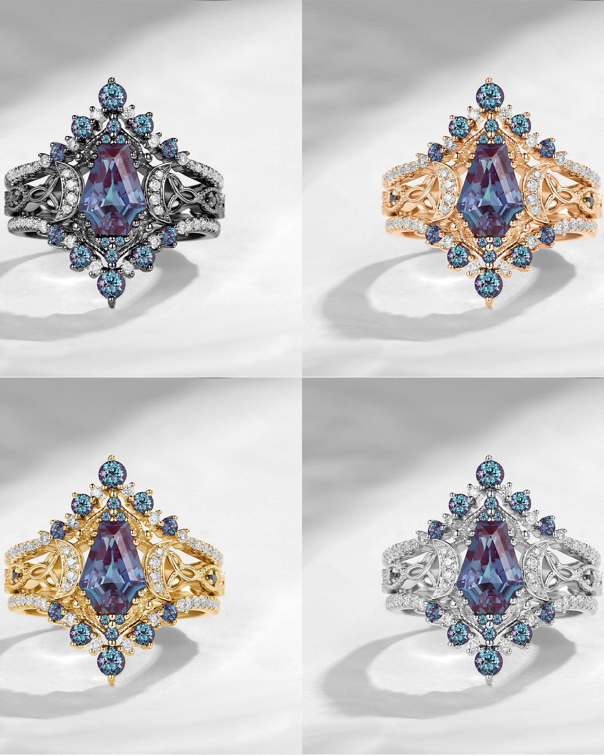 Crescent Moon | Unique Coffin Lab Alexandrite Celtic Infinity Engagement Ring Set 3pcs