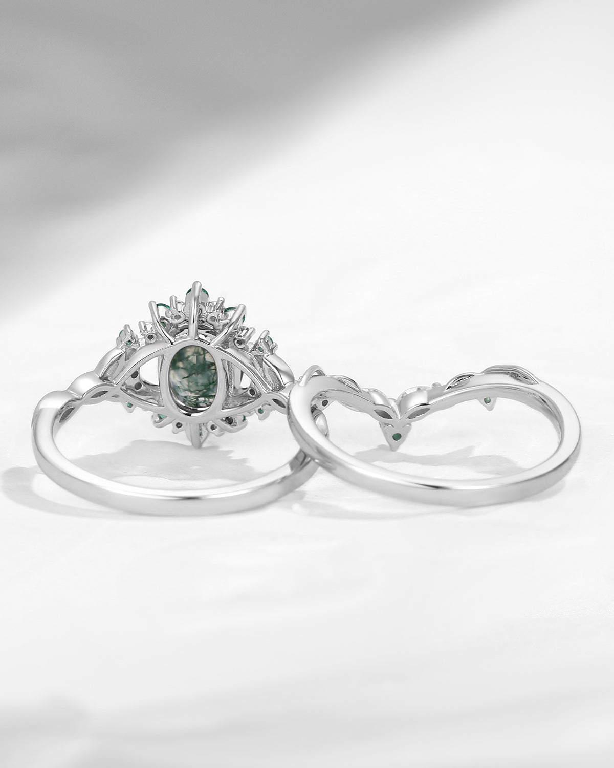 Crescent Moon | Kite Cut Unique Moss Agate Engagement Ring Set 2pcs - Luna