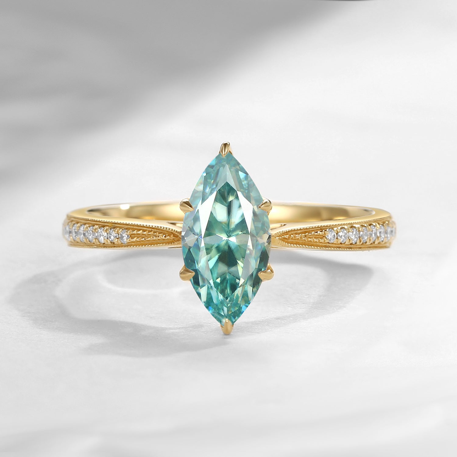 1ct Antique Moissanite Engagement Ring Solitaire Marquise Wedding Ring Milgrain Tapered Flower Ring Setting 6 Six Claw Prongs Size Choice