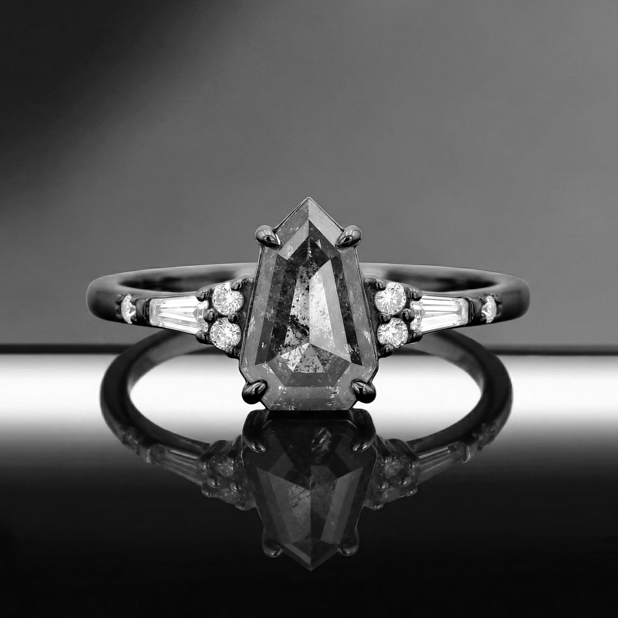 The ring is gorgeous! It also came in a beautiful coffin box. Of course, she said YES! 🖤 My custom ring is also a perfect fit!