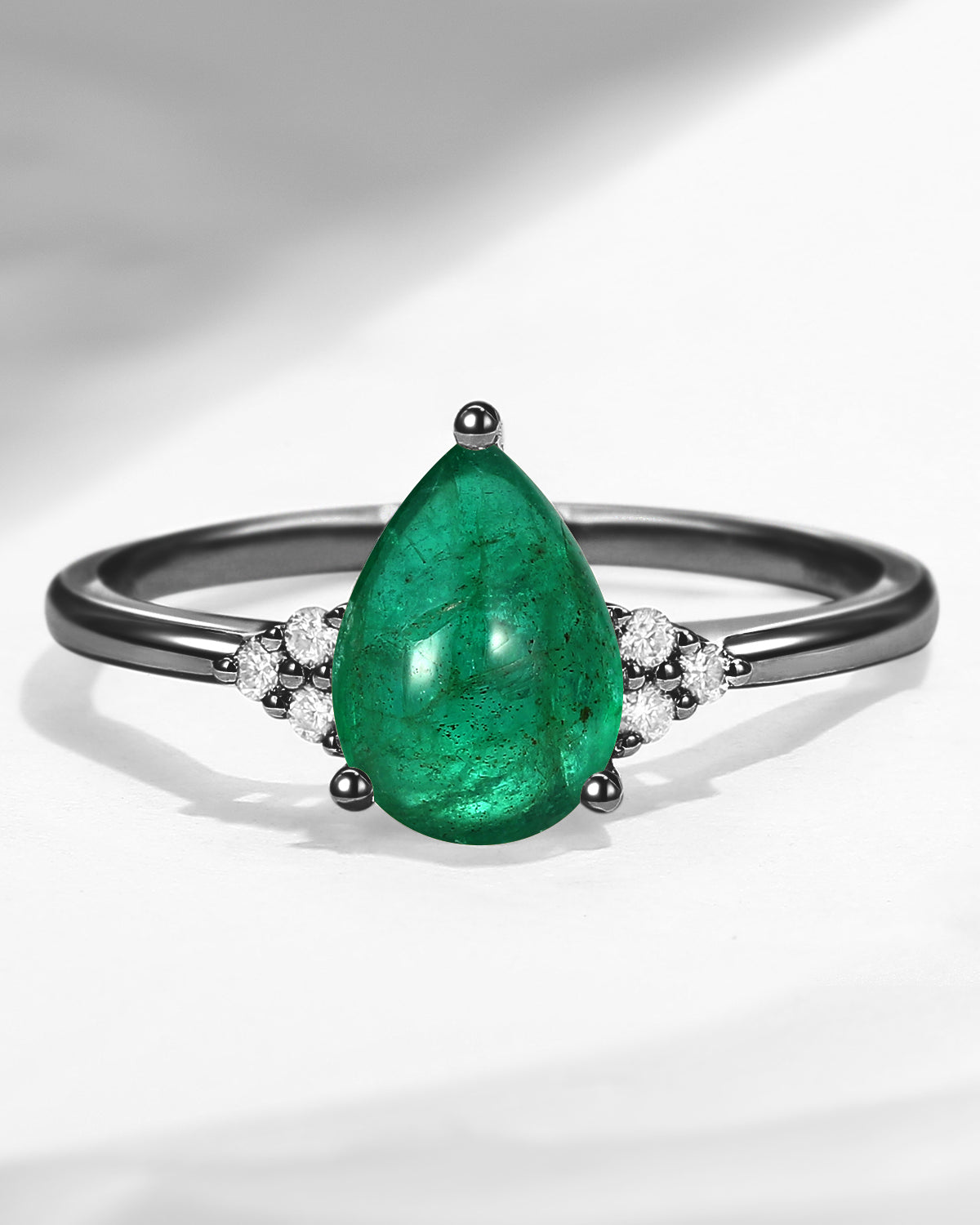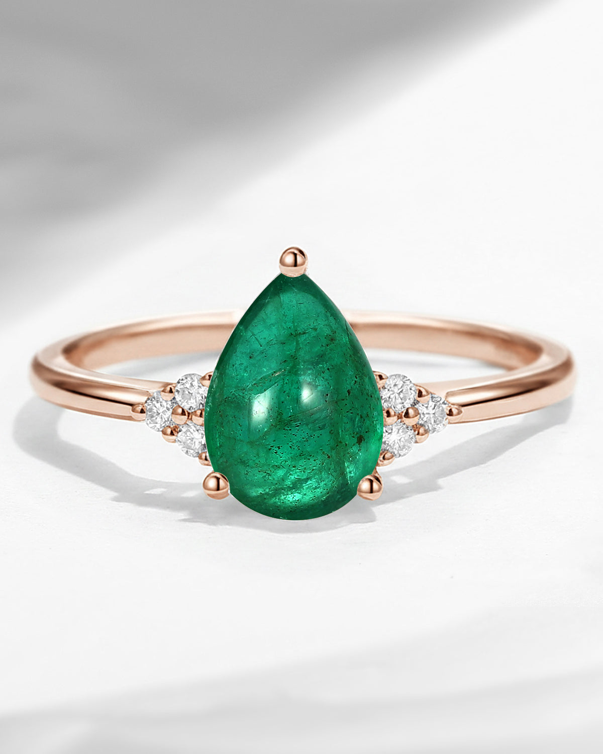 Classic Style Pear Cut Natural Emerald Cluster Engagement Ring