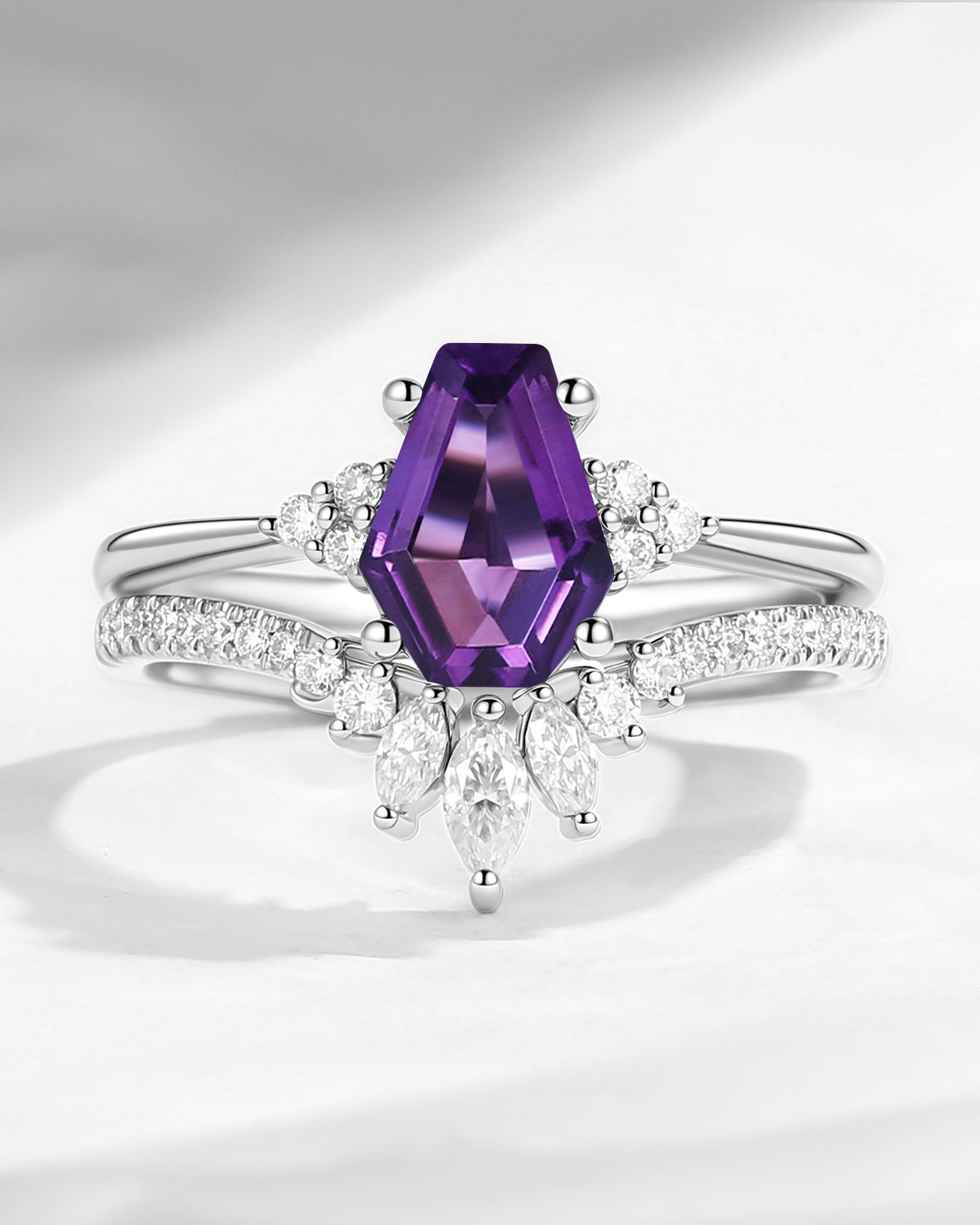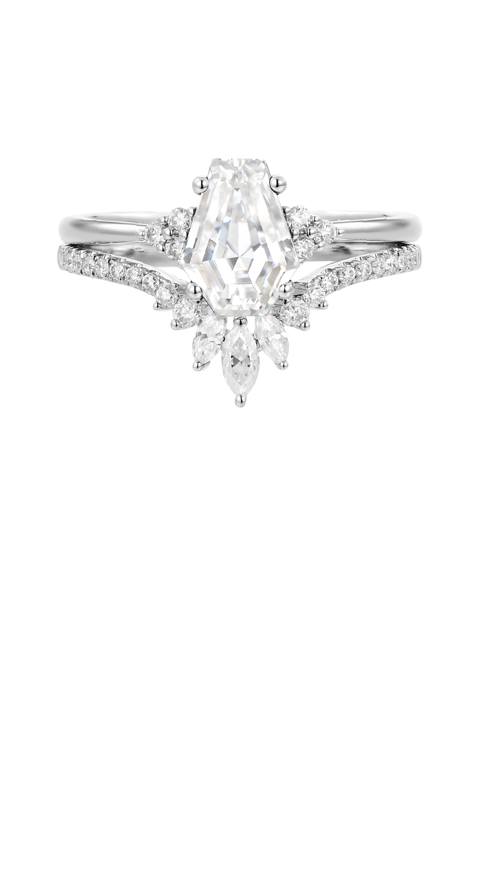 1.0-2.0ct Classic Coffin Cut Lab Diamond Engagement Set 2pcs - White Dress