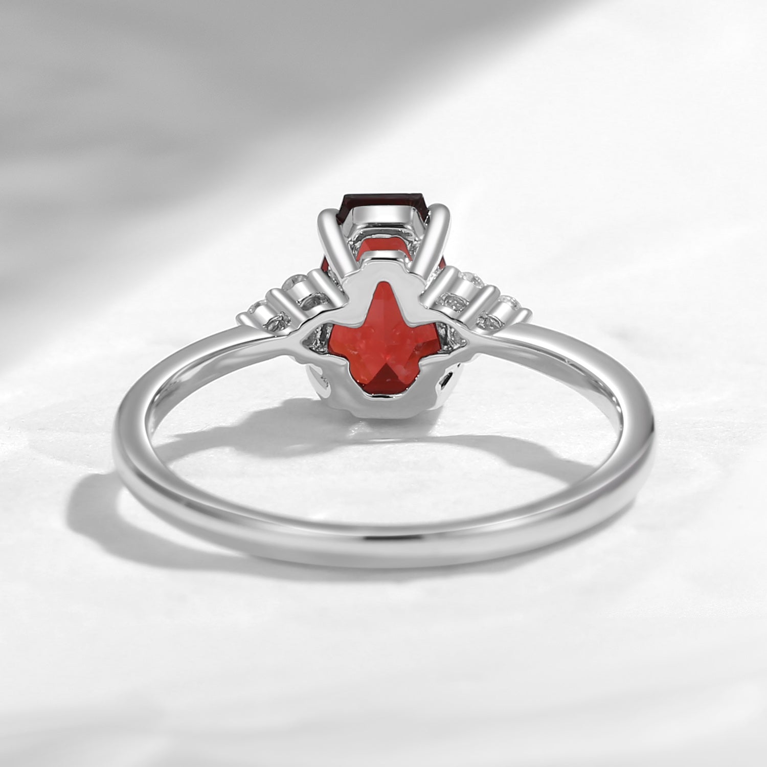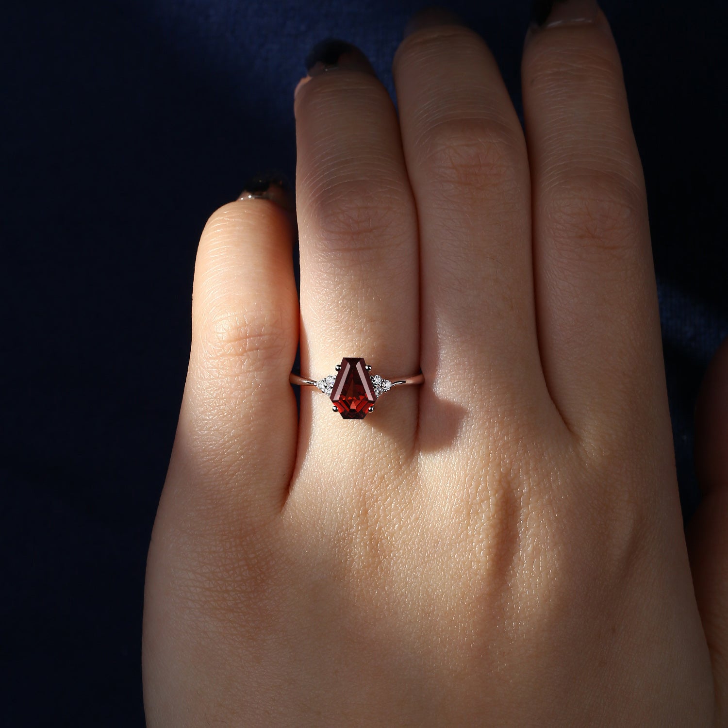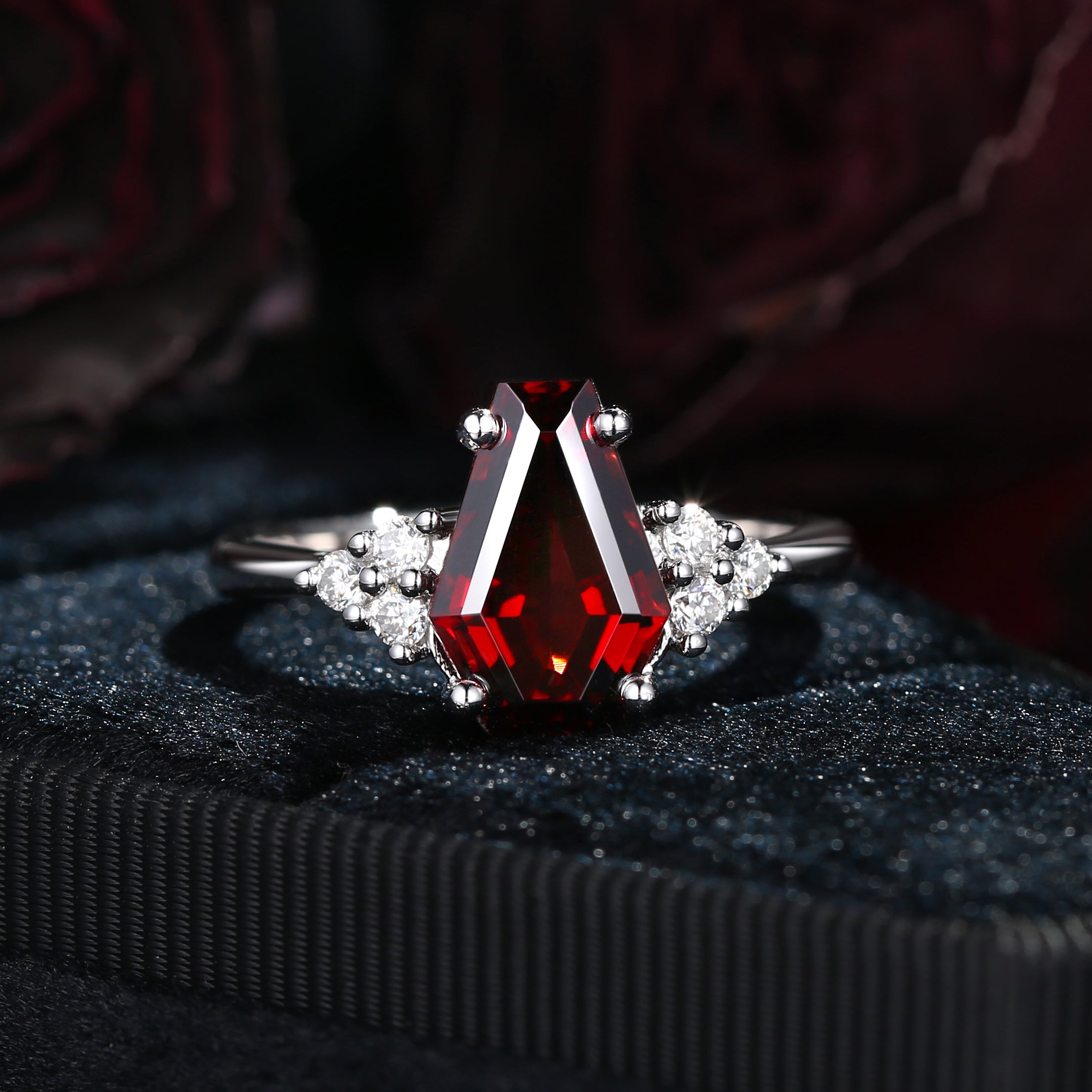 Coffin Shaped Garnet Engagement Ring Unique Cluster Ring Solitaire Ring