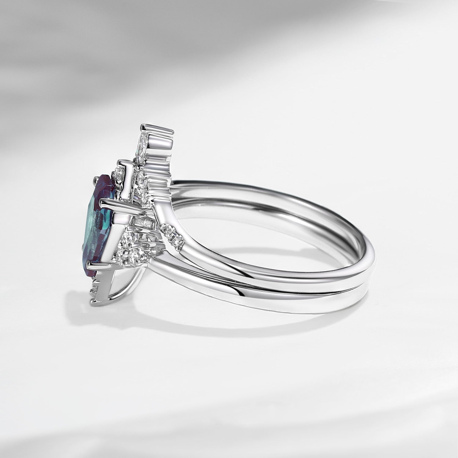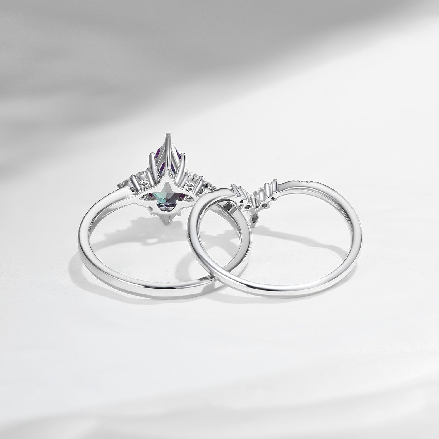 Unique Coffin Alexandrite Engagement Ring Star Ring Set 2Pcs Engagement Ring White Gold Bridal Set 2pcs