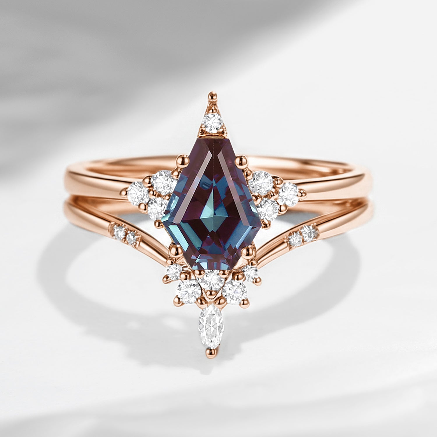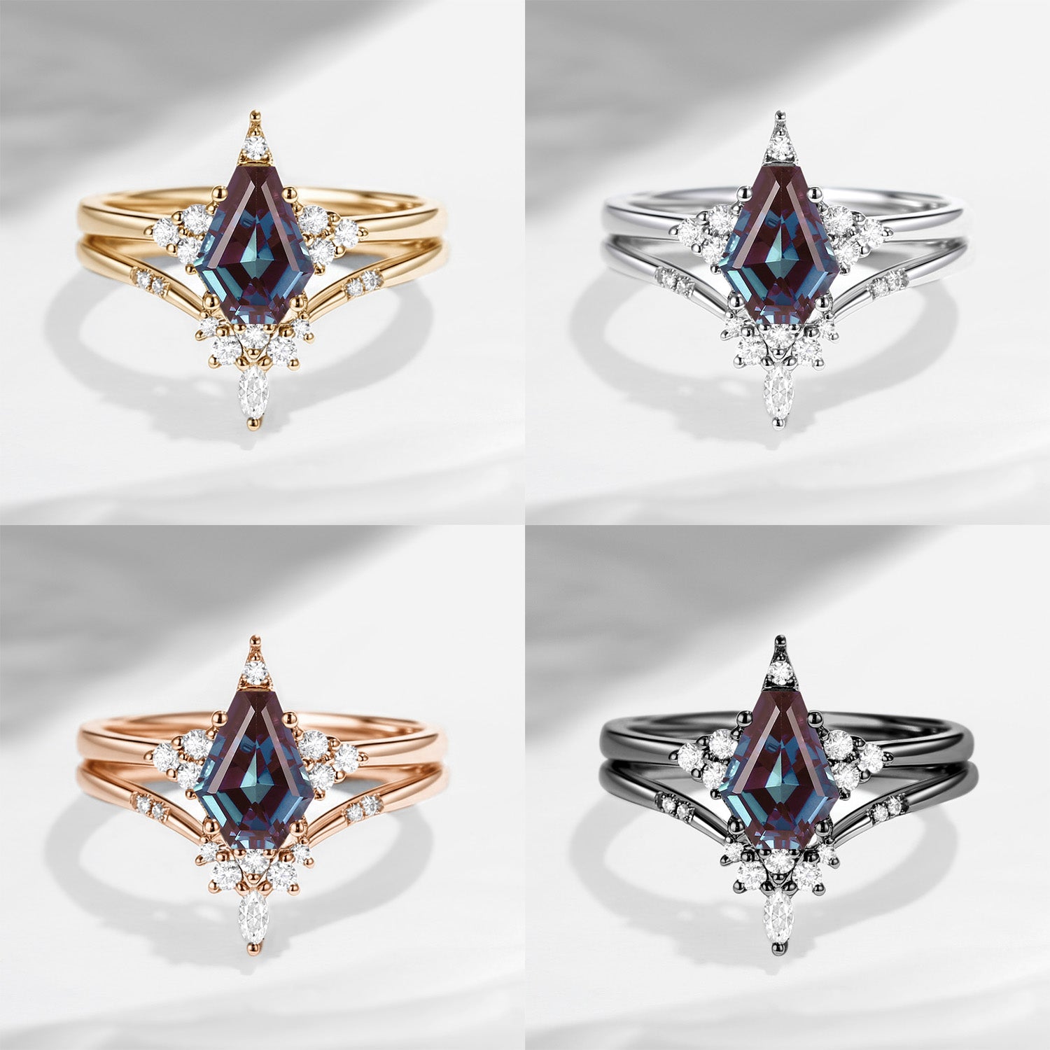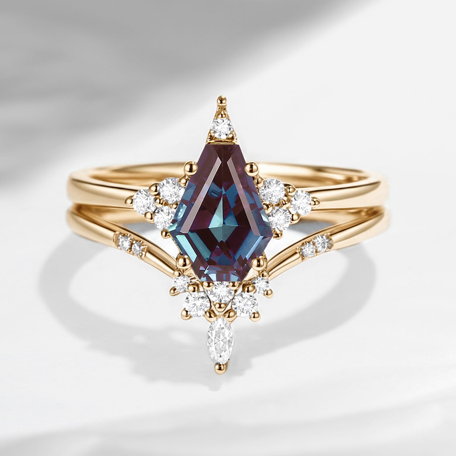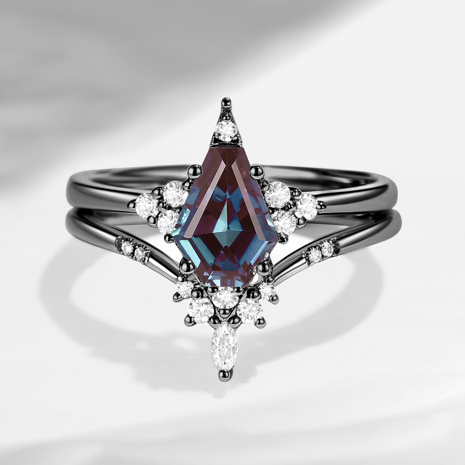 Unique Coffin Alexandrite Engagement Star Ring Set 2pcs - Coffin Kite