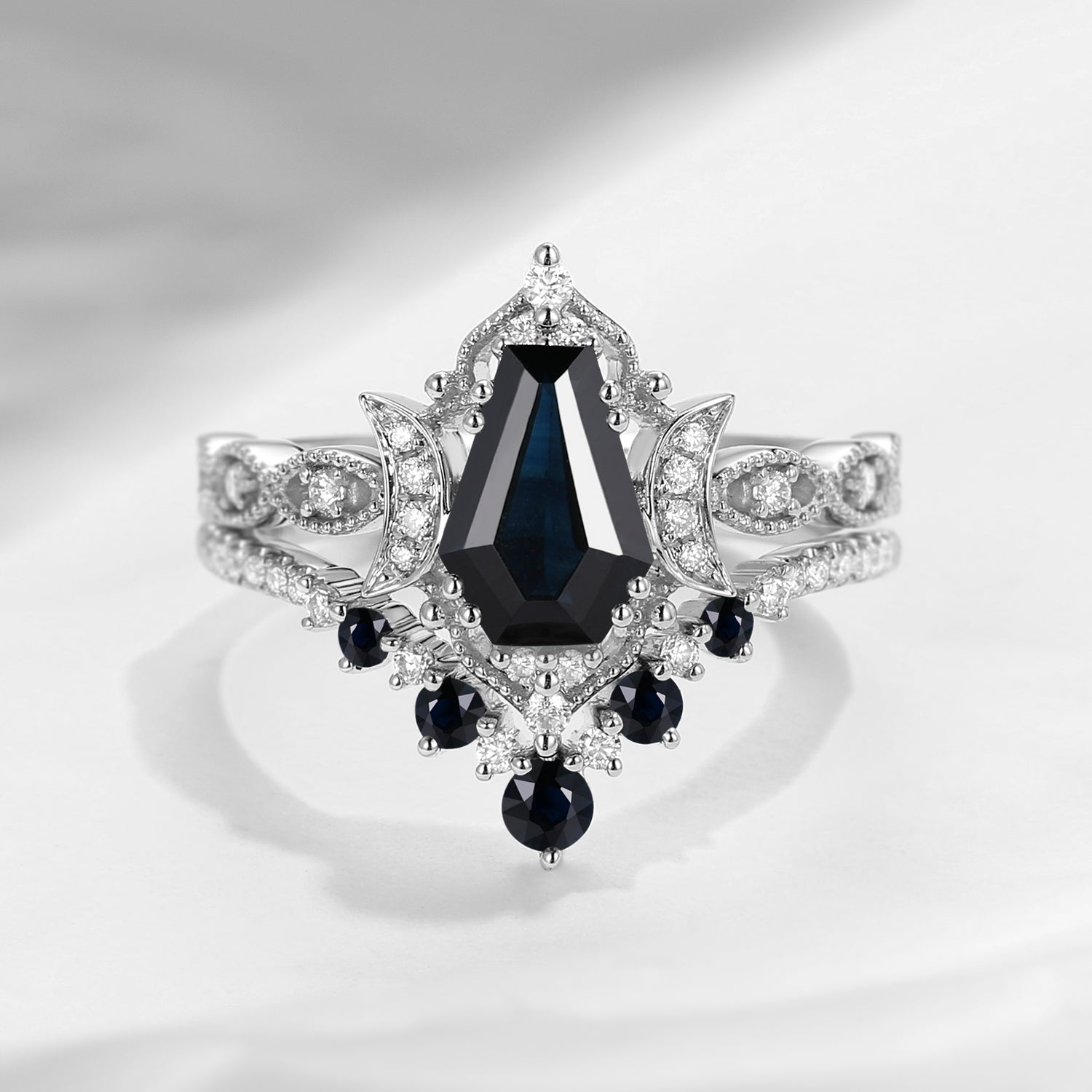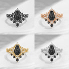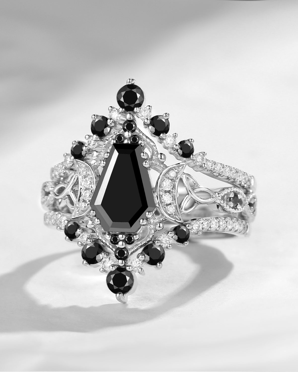 Crescent Moon | Unique Coffin Black Moissanite Celtic Infinity Engagement Ring Set 3pcs