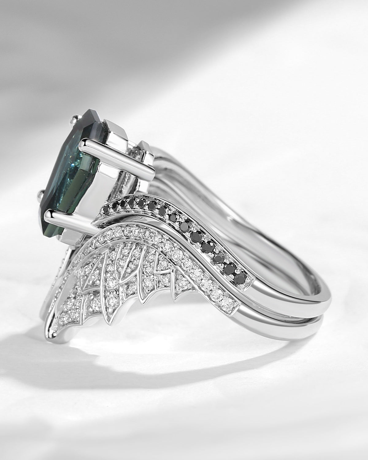 Crescent Moon | Coffin Cut Teal Moissanite Infinity Black Gold Engagement Ring - Infinity Galaxy