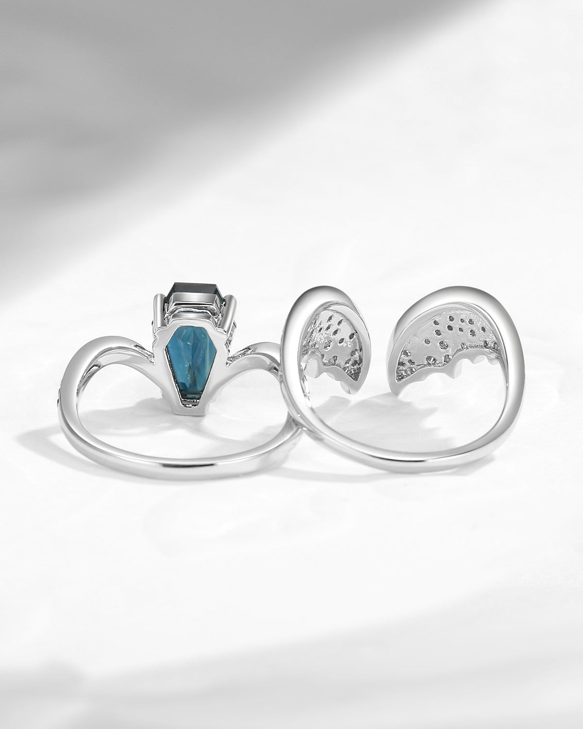 ⟢ Center Stone: Coffin Cut Faceted Teal Moissanite
