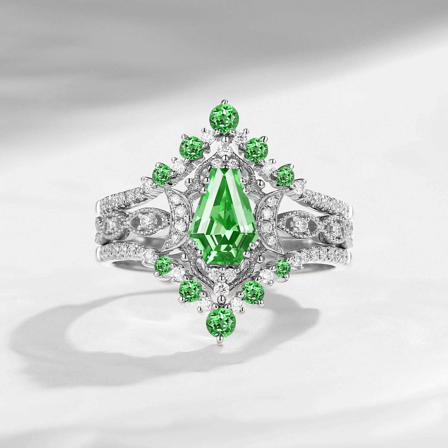 Crescent Moon | Coffin Moss Agate & Lab Emerald Ring 3pcs 18k - Till Death Do Us Part