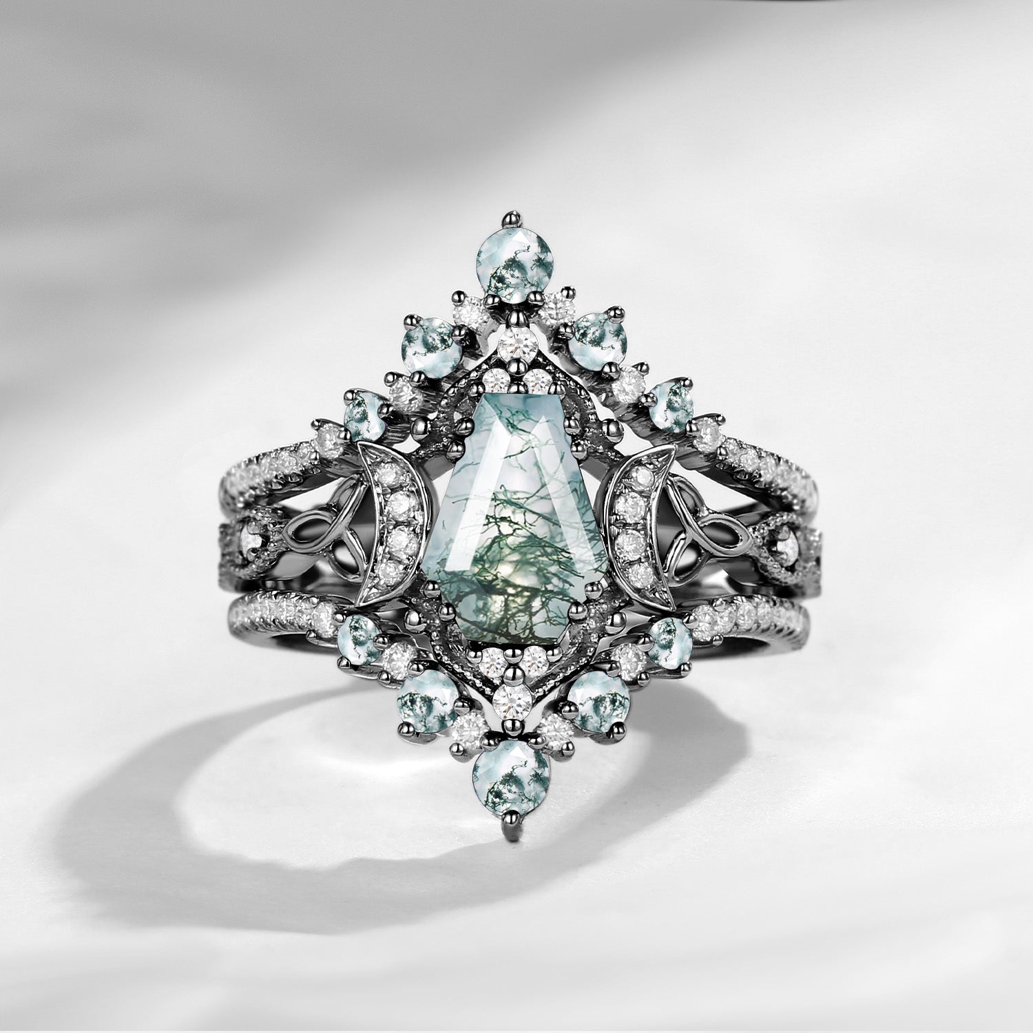 Crescent Moon | Celtic Unique Coffin Black Moissanite Infinity Engagement Ring Set 3pcs