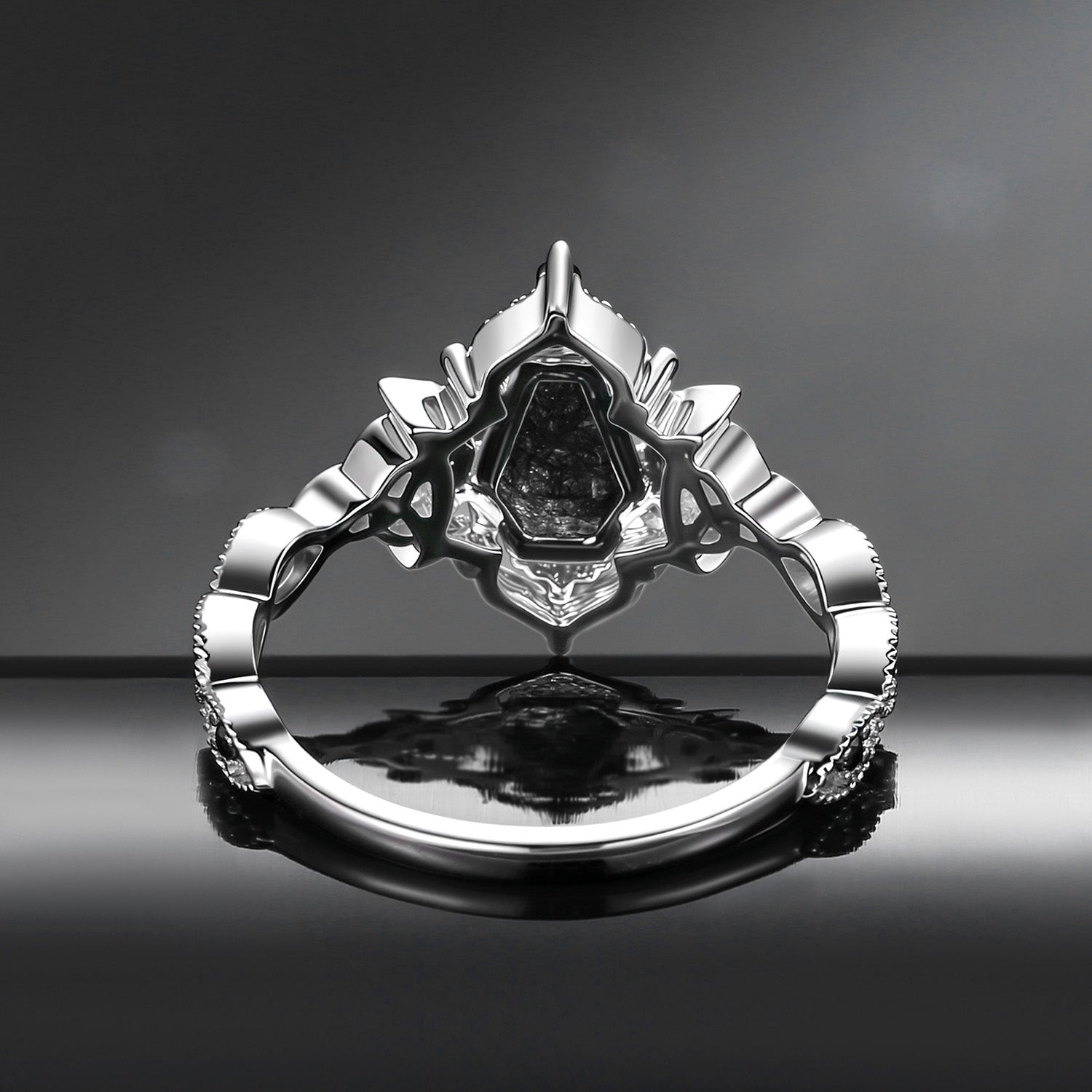 Crescent Moon | Unique Coffin Cut Black Moissanite Celtic Engagement Ring Set 2pcs
