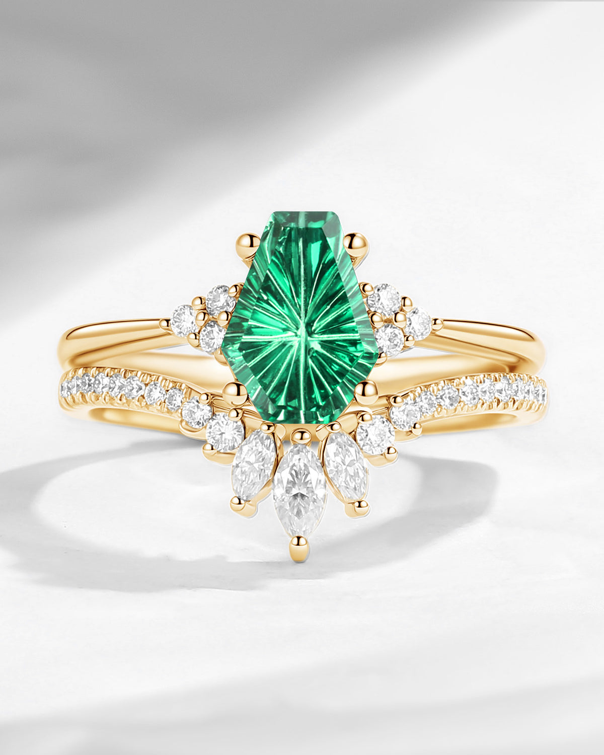 ⟢ Center Stone: Coffin, Firework Cut Lab Emerald