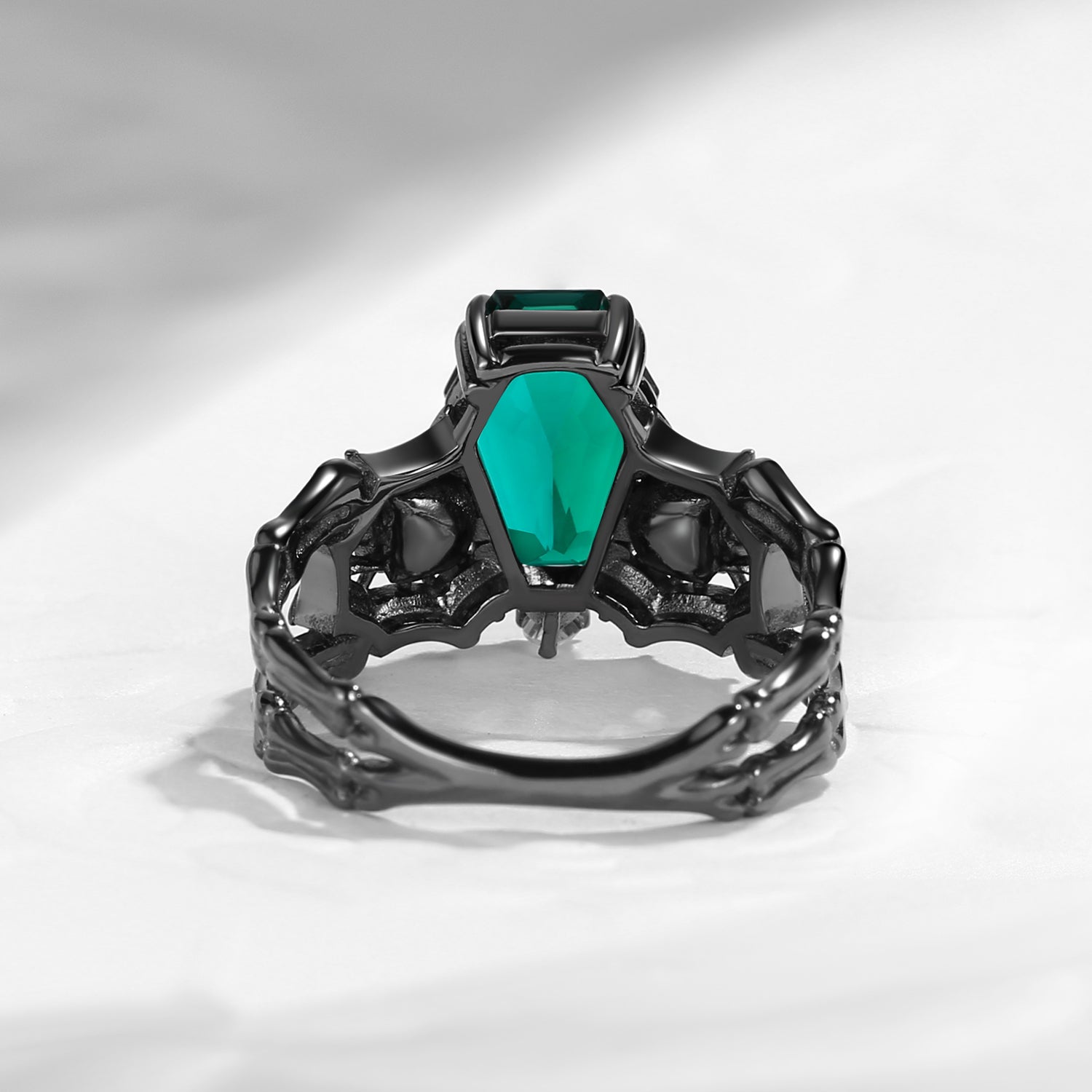 Gothic Inspired Skull & Skeleton Coffin Cut Lab Emerald 2-in-1 Engagement Ring