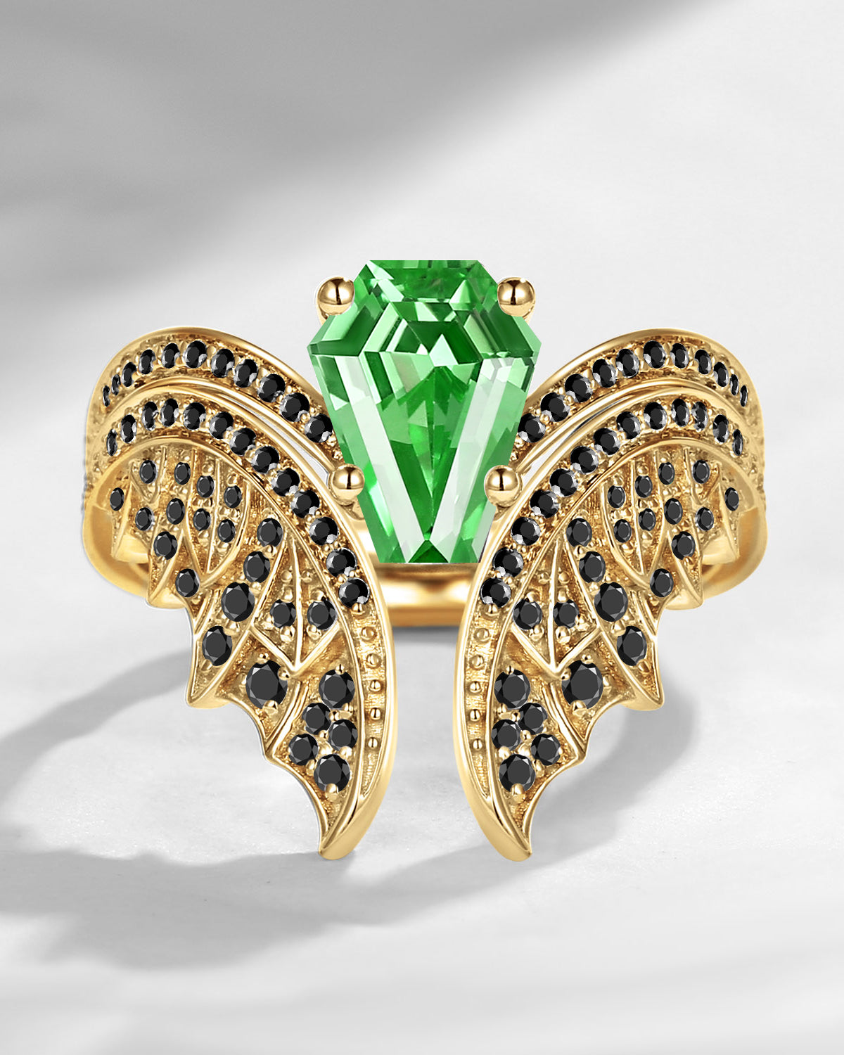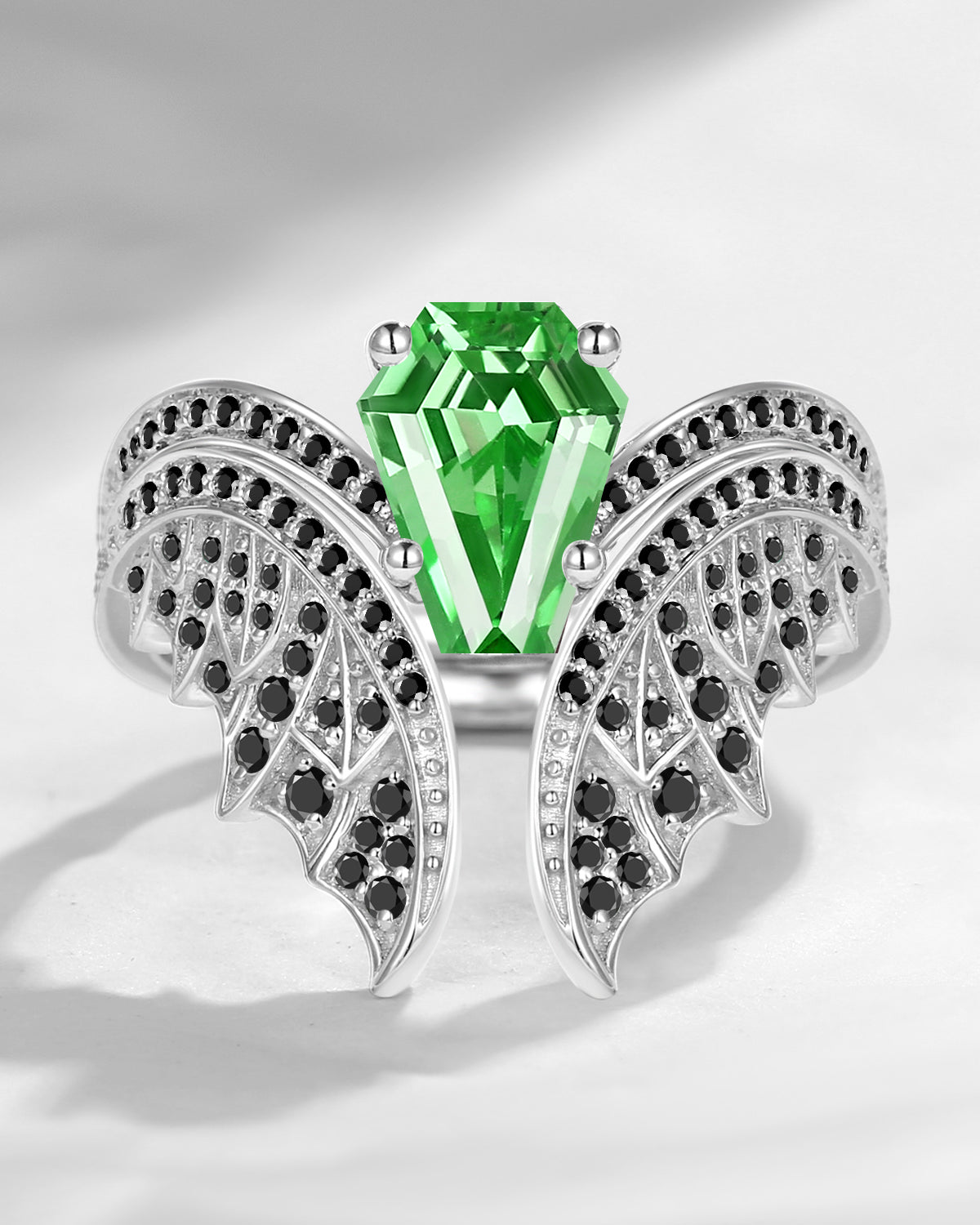 Gothic Inspired Skull & Skeleton Coffin Cut Lab Tsavorite 2-in-1 Engagement Ring
