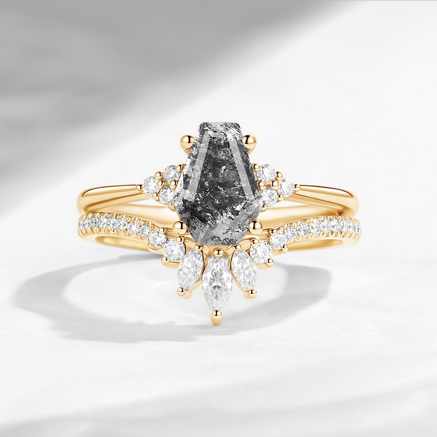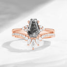 Unique Coffin Cut Herkimer Diamond Gothic Engagement Ring Bridal Set 2PCS - White Dress Ring Gift