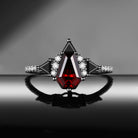 Unique Style Coffin Shaped Garnet Cluster Engagement Ring