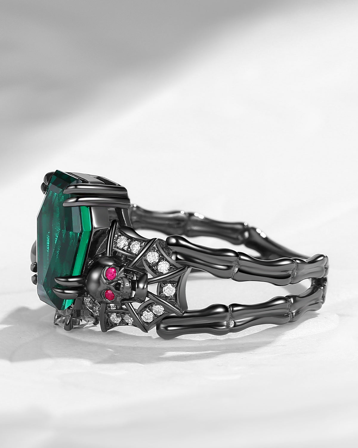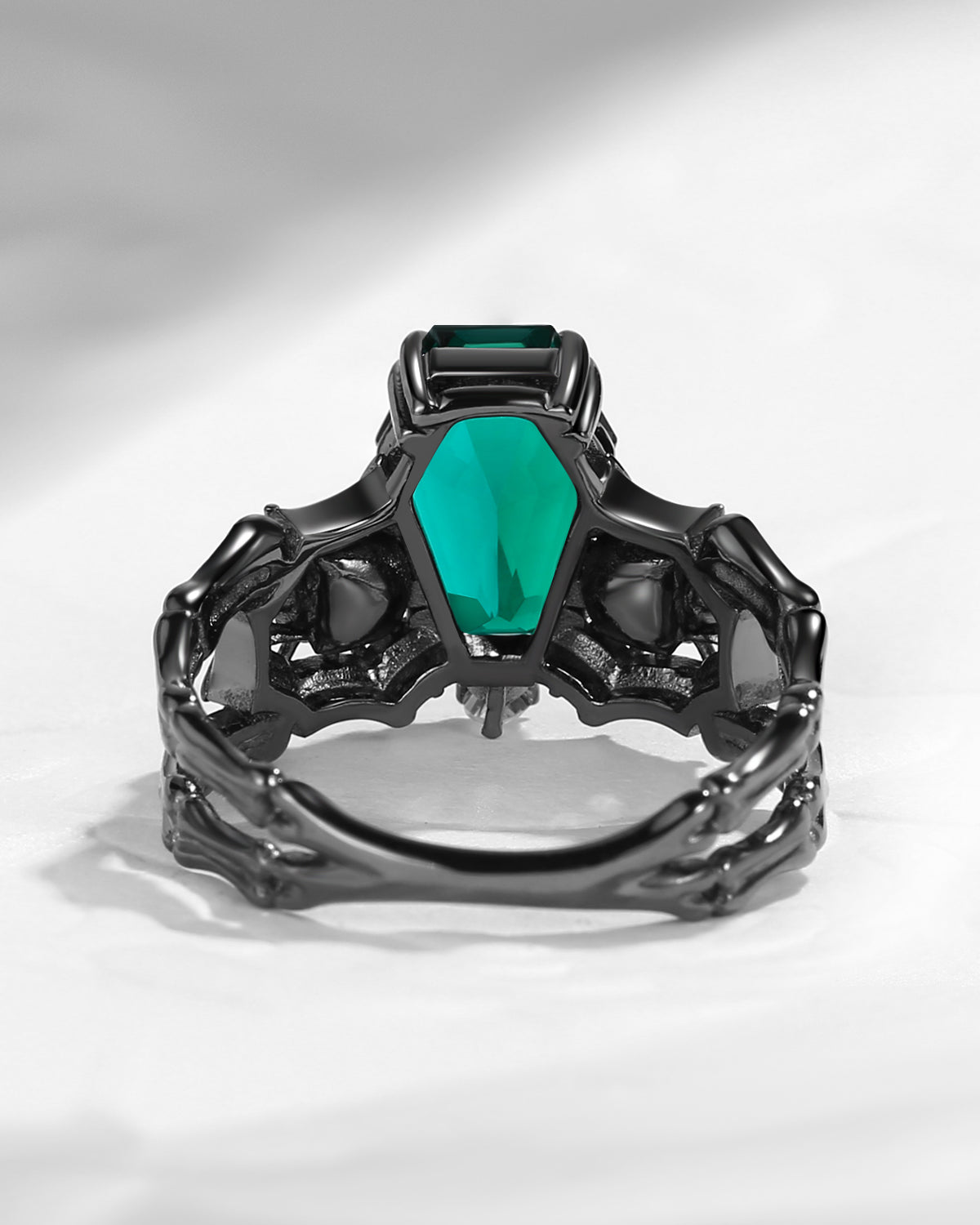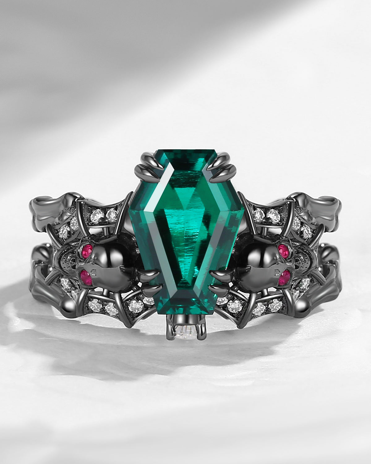 Gothic Inspired Skull & Skeleton Coffin Cut Lab Emerald 2-in-1 Engagement Ring