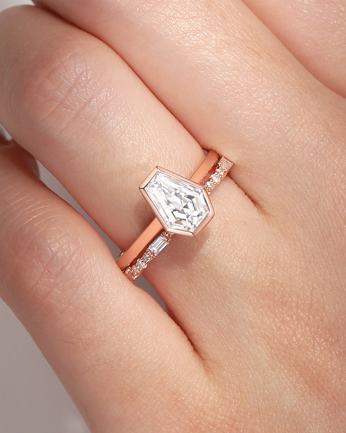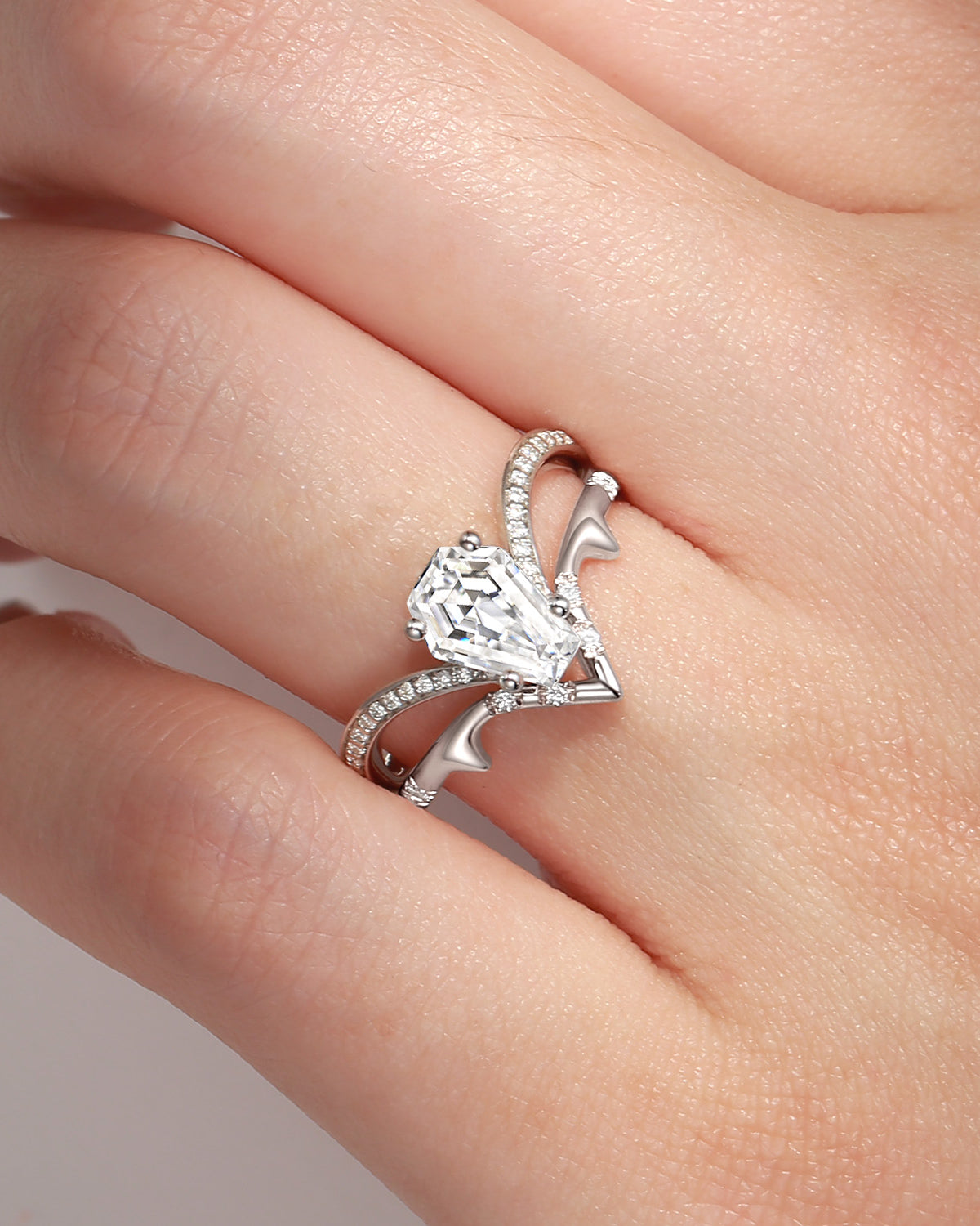 Coffin engagement ring is a unique and non-traditional choice. Coffin rings have a distinct personality and style, making the ring not only a symbol but also a fashionable expression. The coffin cut ring is especially suitable for those seeking uniqueness and innovation. Coffin cut engagement rings symbolize the eternal commitment to love, whether now or in the future, this unique ring will accompany the wearer's life - just like what they say - Till Death Do Us Apart.