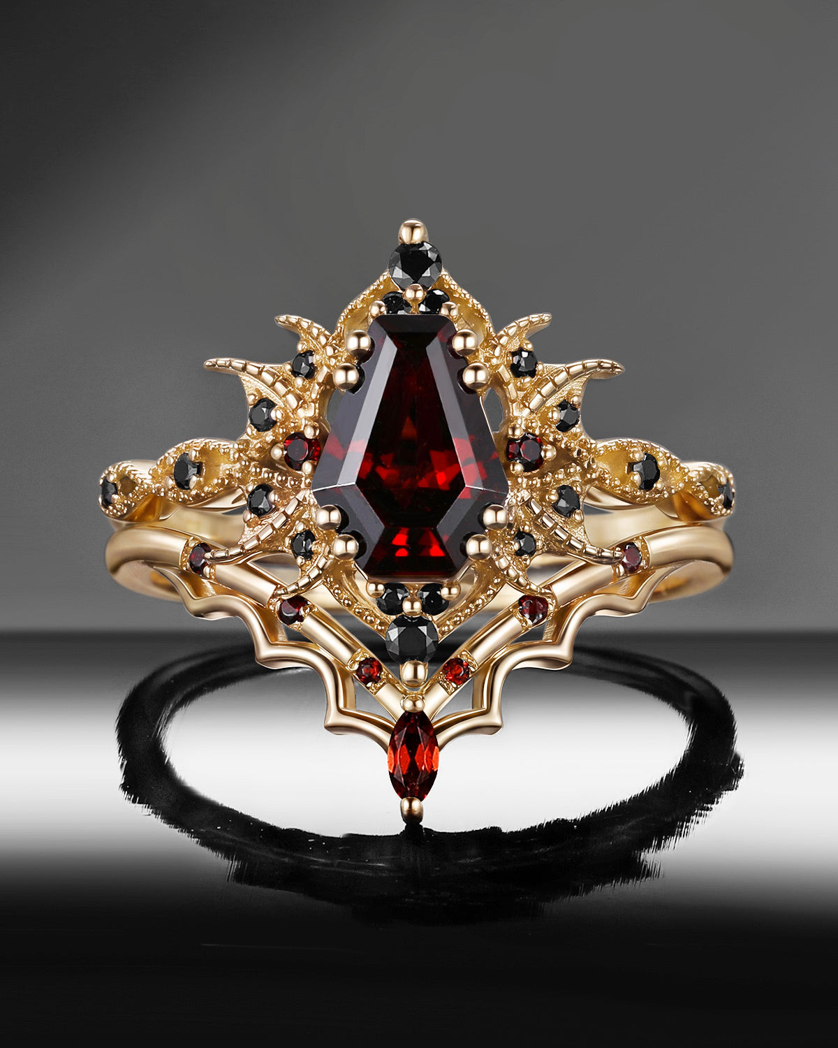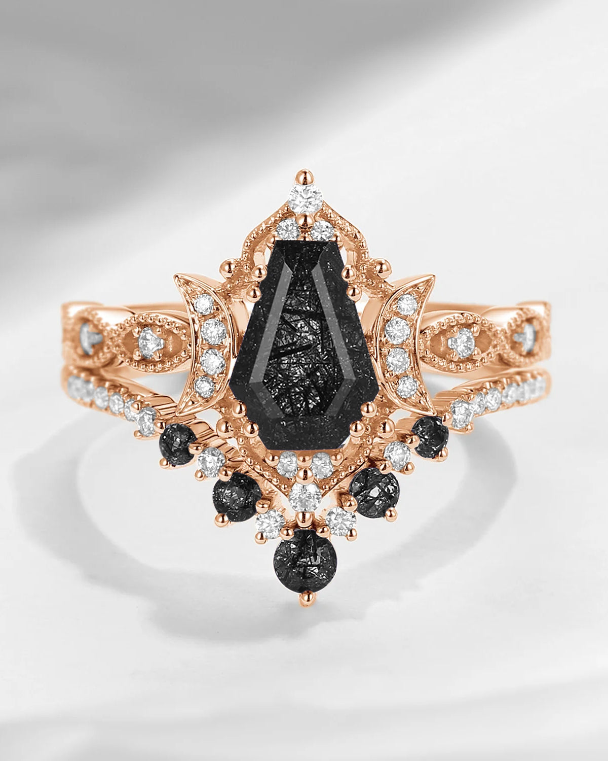Coffin shape is a unique gemstone cutting shape, named after its similarity to the shape of a coffin. The origin of this cutting shape can be traced back to the 18th century, when jewelers created it in pursuit of unique and novel designs. The coffin ring has a rectangular profile with sharp ends, just like a coffin. This cut can maximize the size of the rough stone and highlight the brilliance and color of the gem.