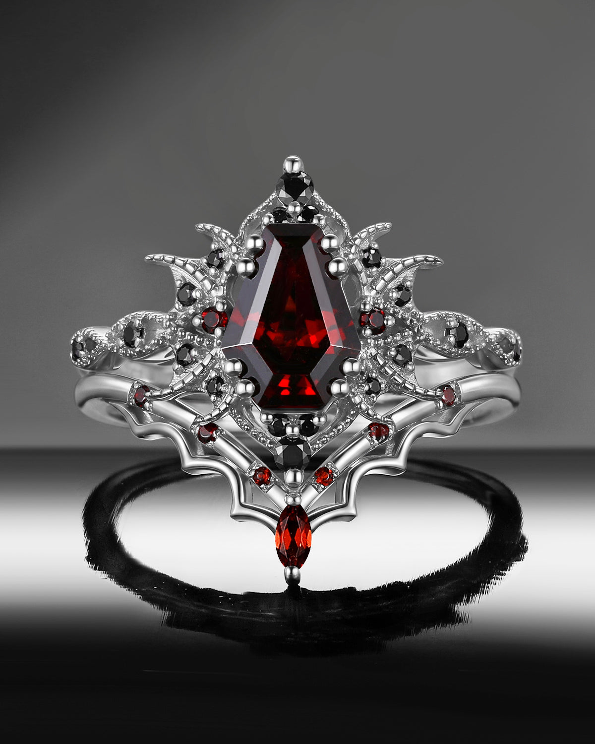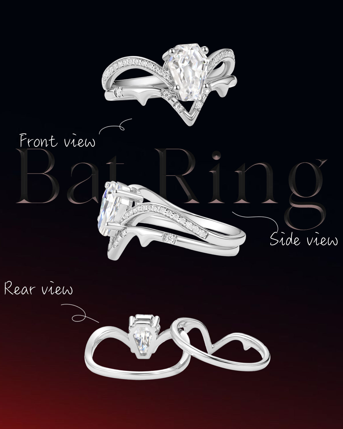 Coffin engagement ring is a unique and non-traditional choice. Coffin rings have a distinct personality and style, making the ring not only a symbol but also a fashionable expression. The coffin cut ring is especially suitable for those seeking uniqueness and innovation. Coffin cut engagement rings symbolize the eternal commitment to love, whether now or in the future, this unique ring will accompany the wearer's life - just like what they say - Till Death Do Us Apart.