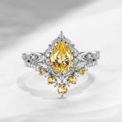 Antique Pear Cut Yellow Lab Diamond Engagement Ring 2pcs