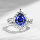 1.5ct Pear Shaped Lab Sapphire Engagement Ring Set 2pcs Chevron Paved Wedding Ring Women Flower Vintage Inspired Ring 'Evelyn'