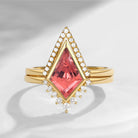 Kite Cut Lab Padparadscha Peach Sapphire Ring Set 2pcs Unique Kite Cut Engagement Ring