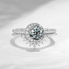 Crescent Moon | Unique Grey Moissanite Engagement Ring Set 2pcs - Full Moon
