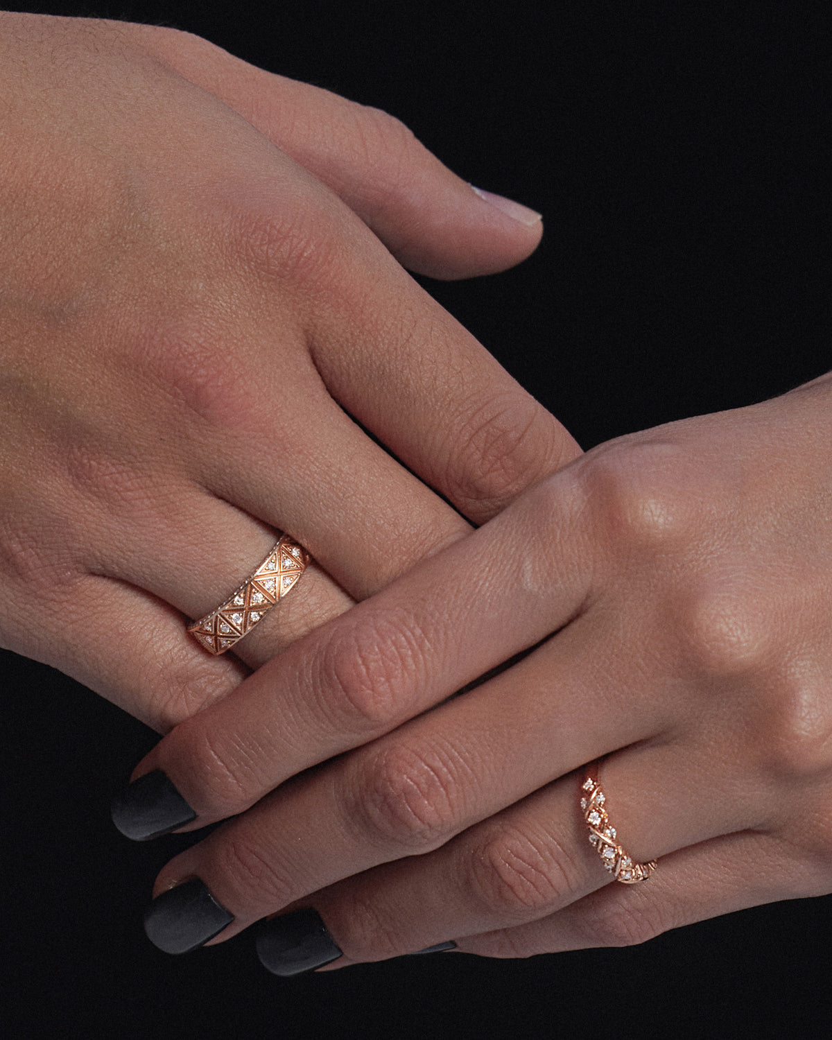 Gothic Inspired 'Thorns & Roses' Coffin Cut Garnet Couple Rings 2pcs