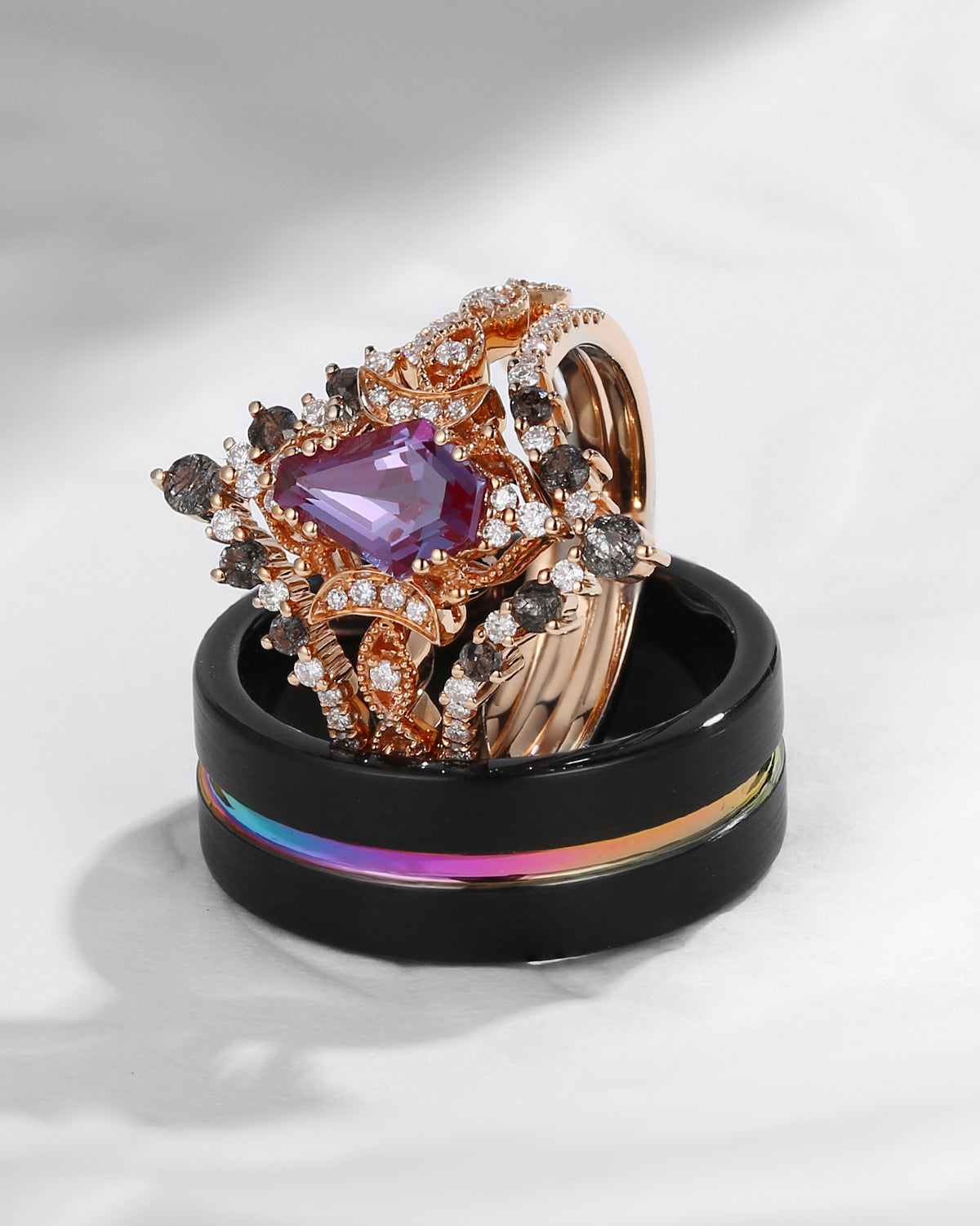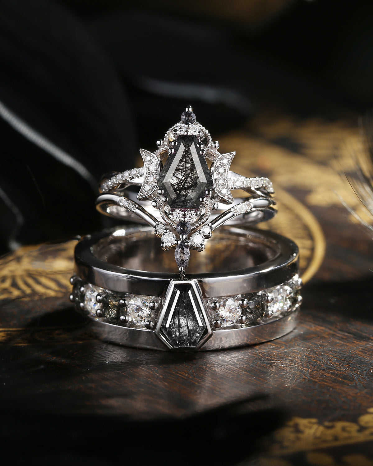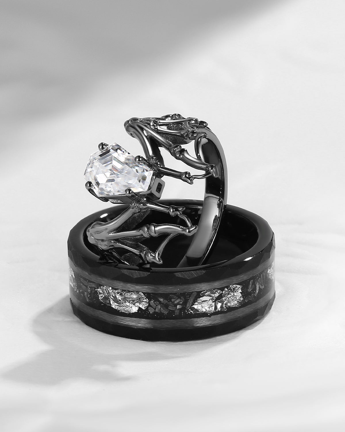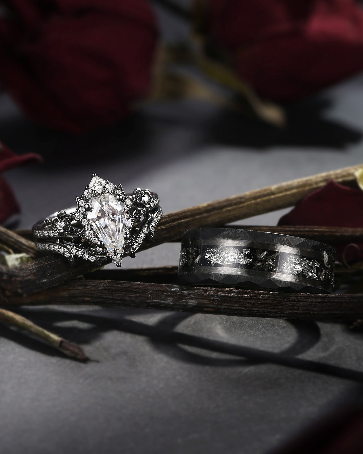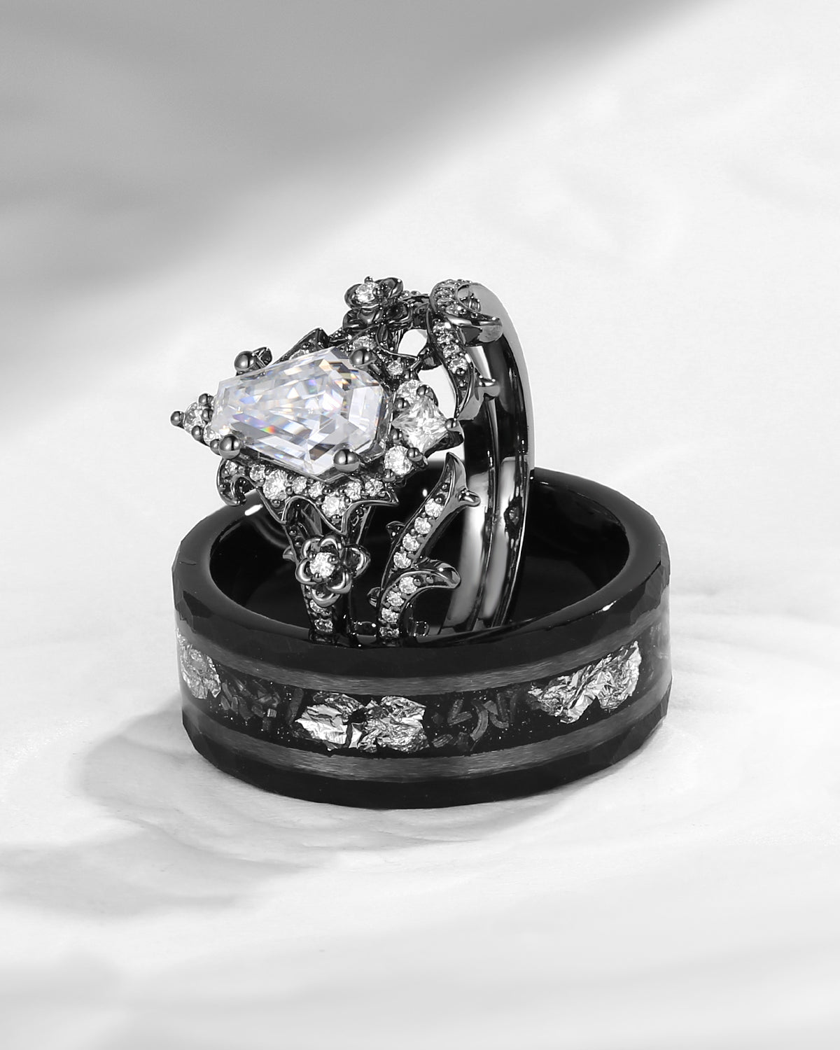 Bat Wing Inspired Coffin Moissanite Couple Bridal Ring Set