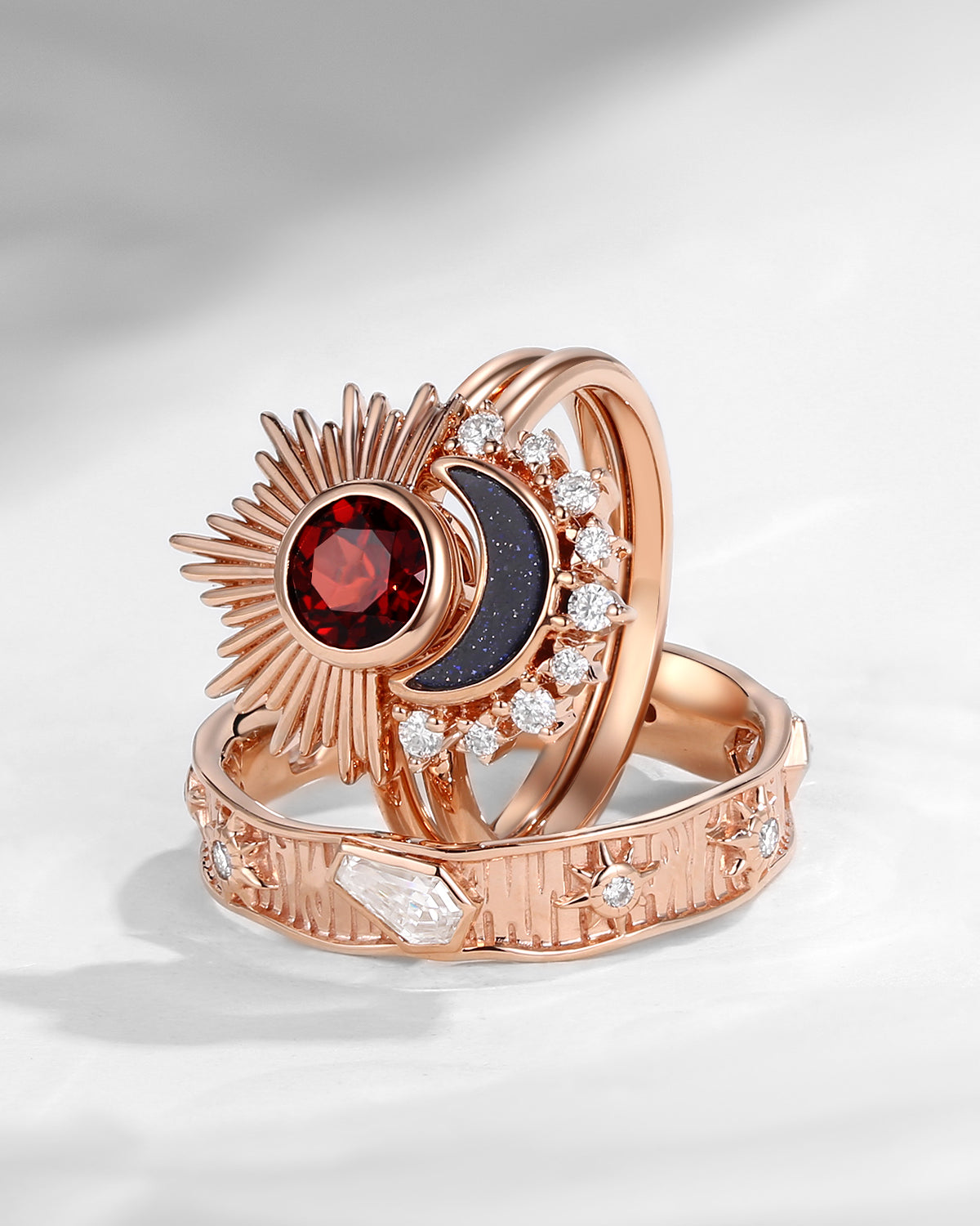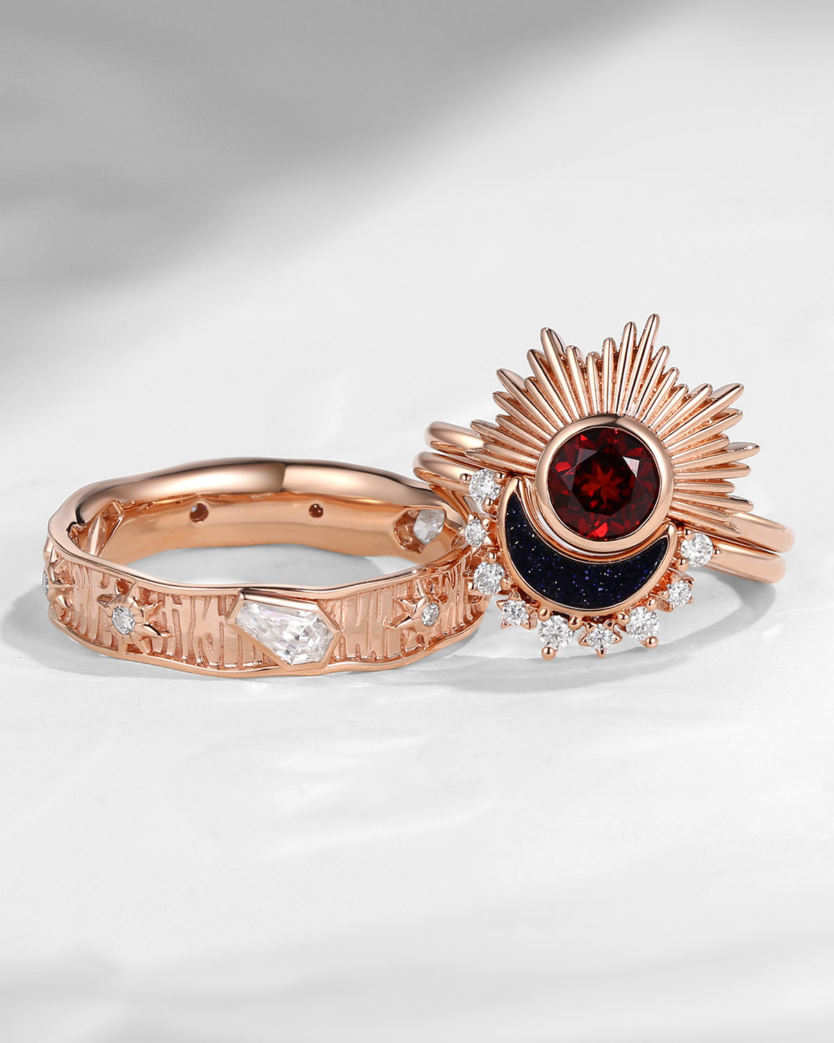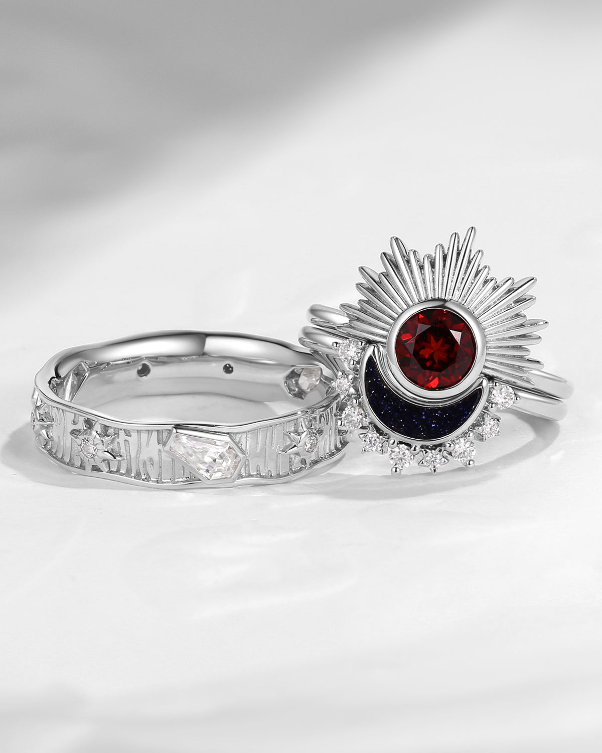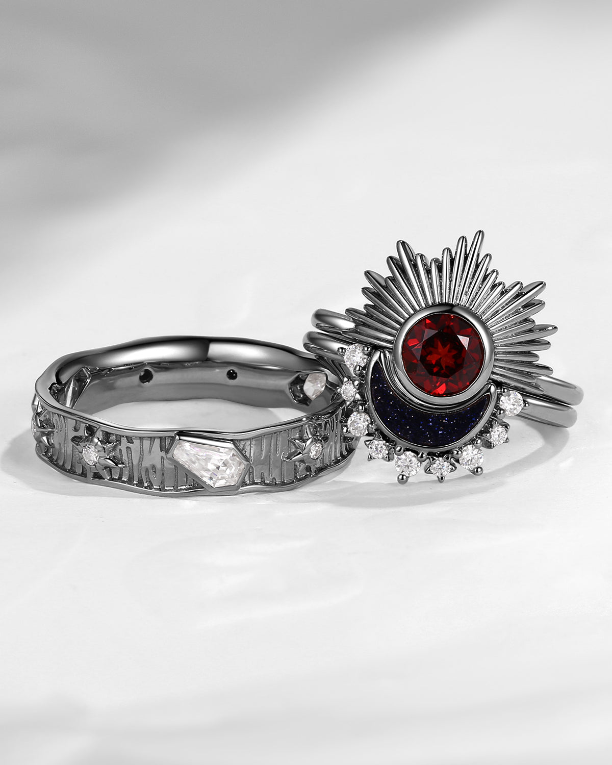 Retro Sun & Moon Ring Couple Wedding Ring Set