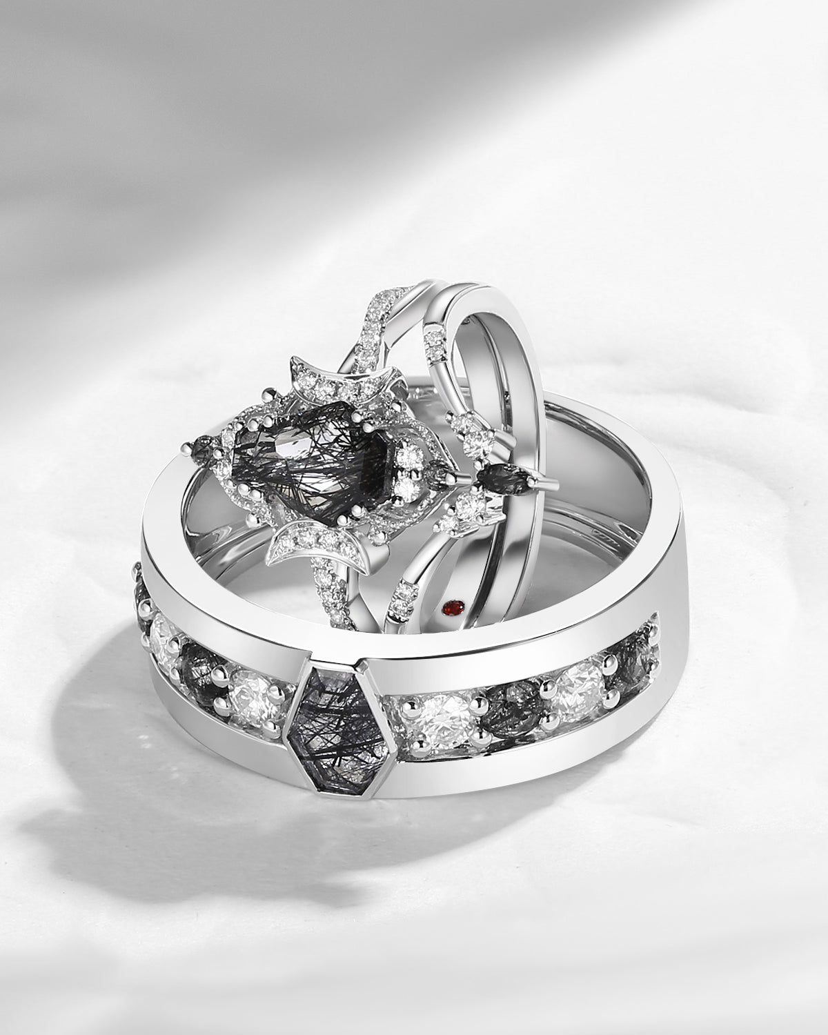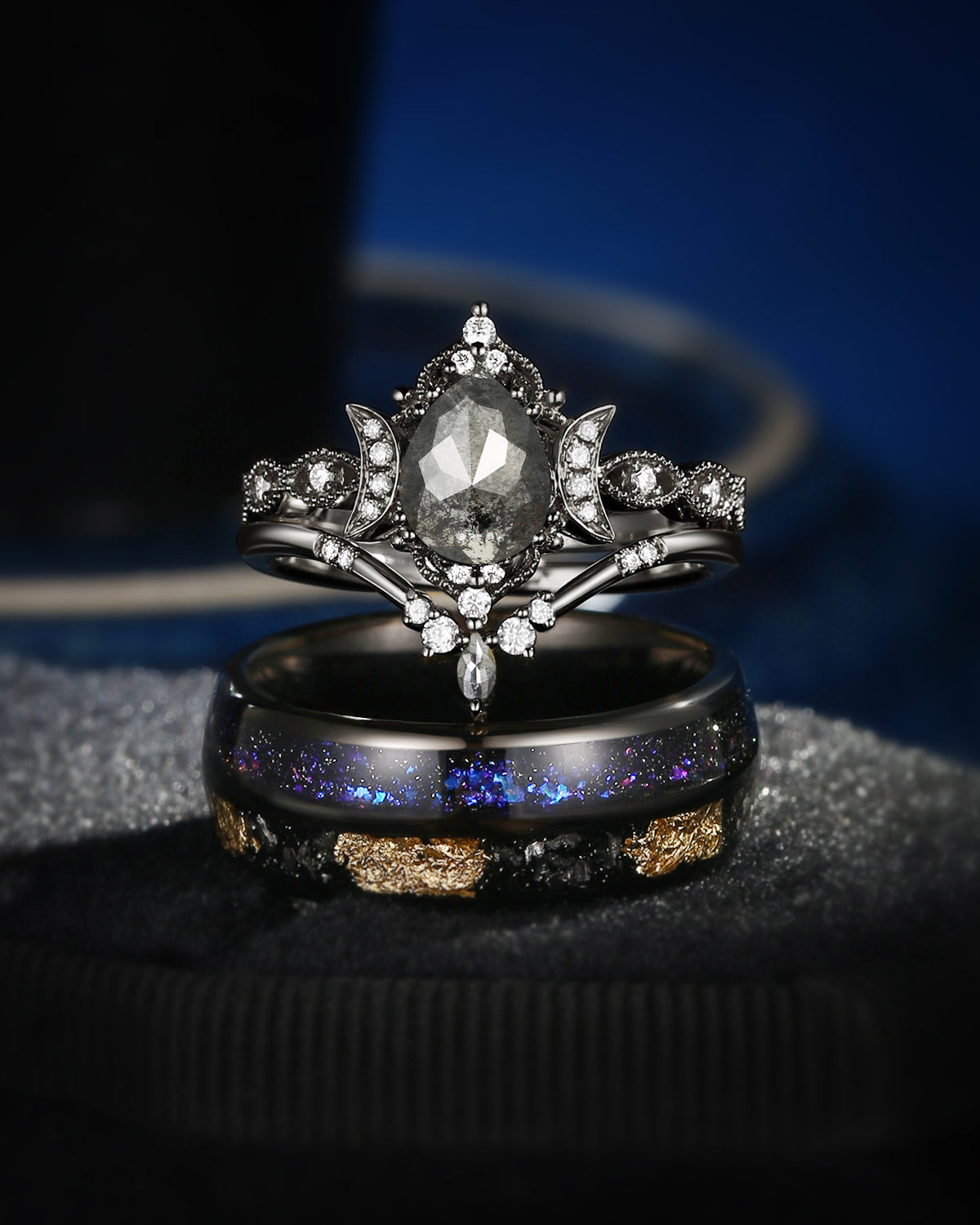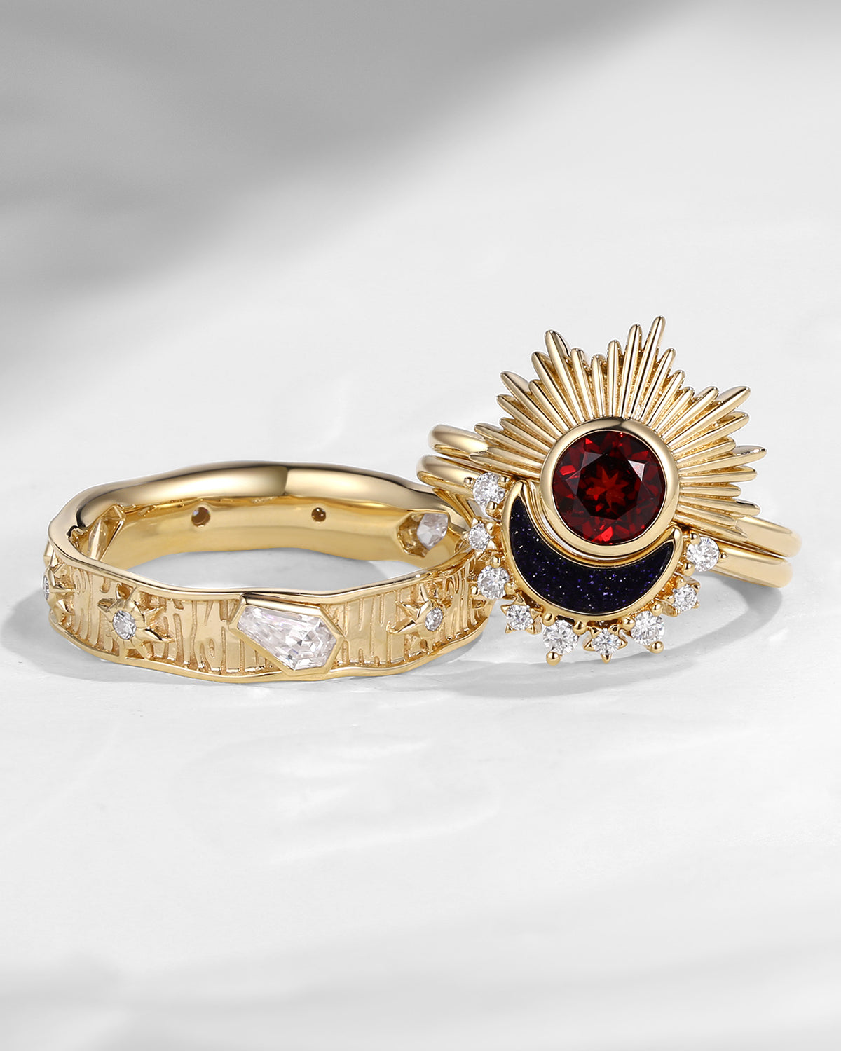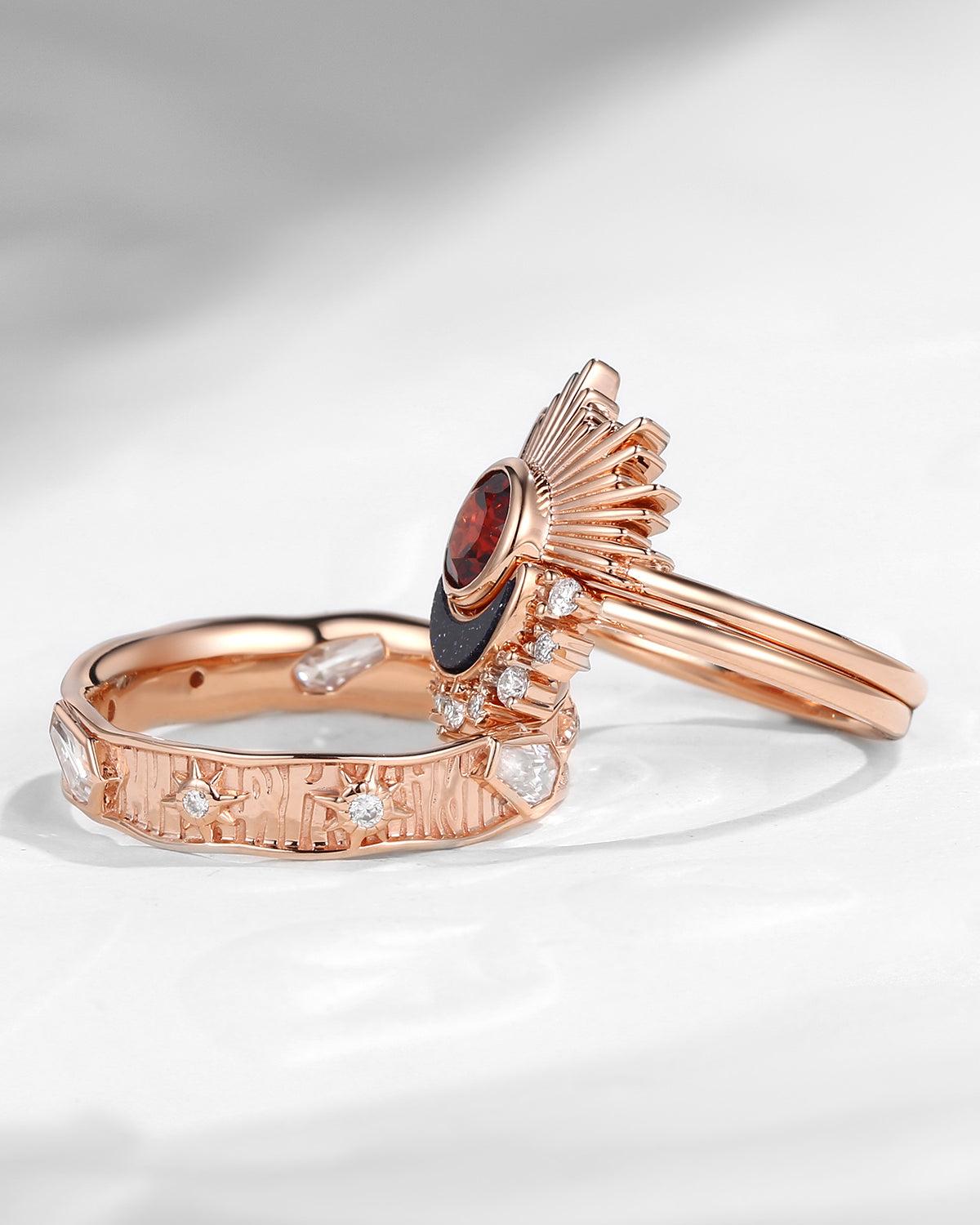Retro Sun & Moon Ring Couple Wedding Ring Set