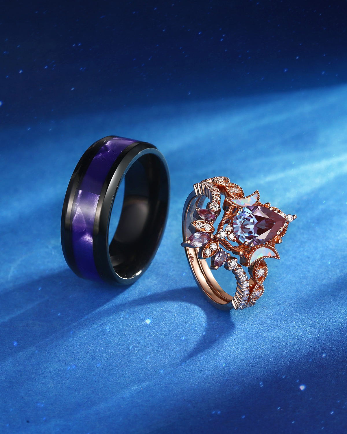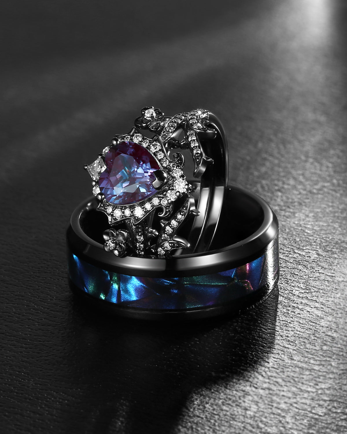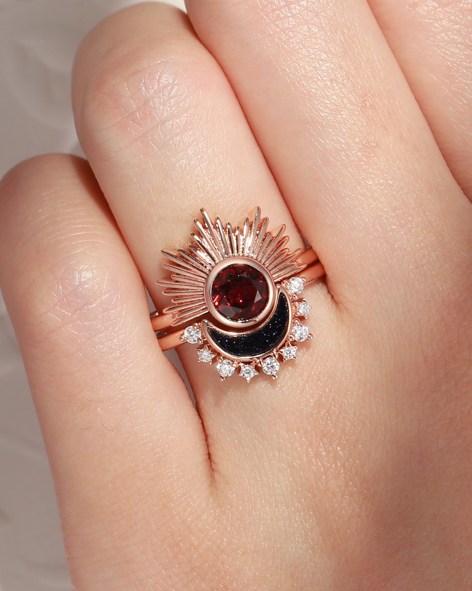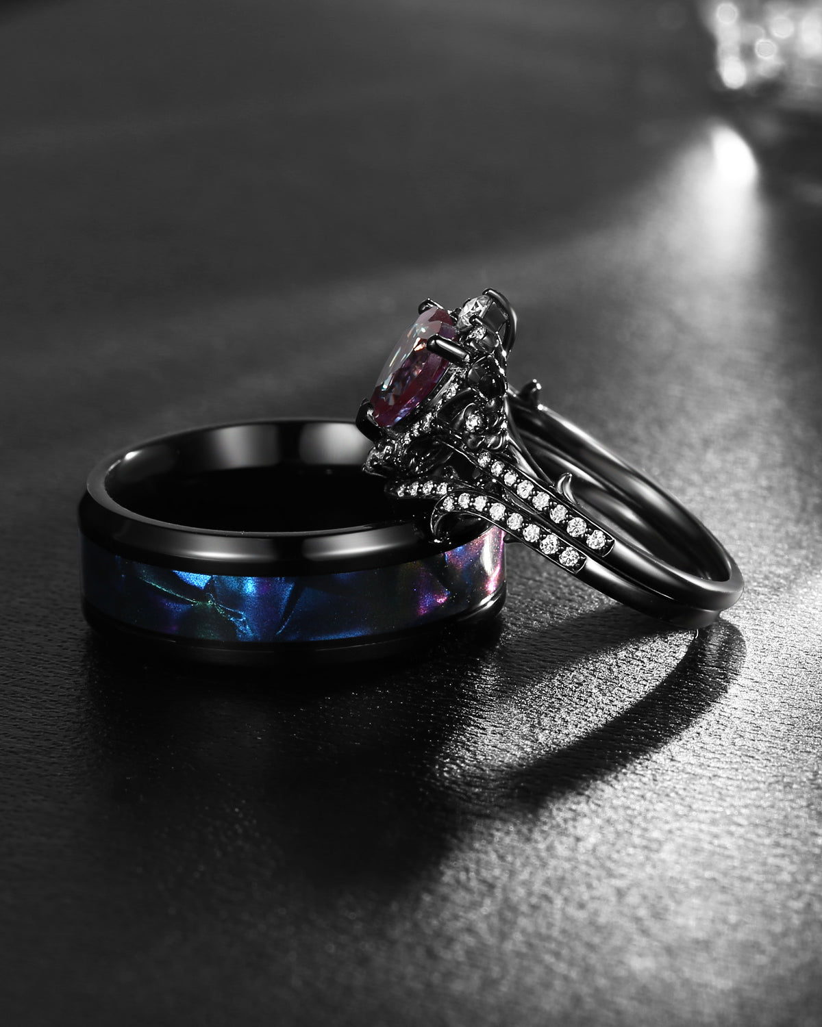 Retro Sun & Moon Ring Couple Wedding Ring Set